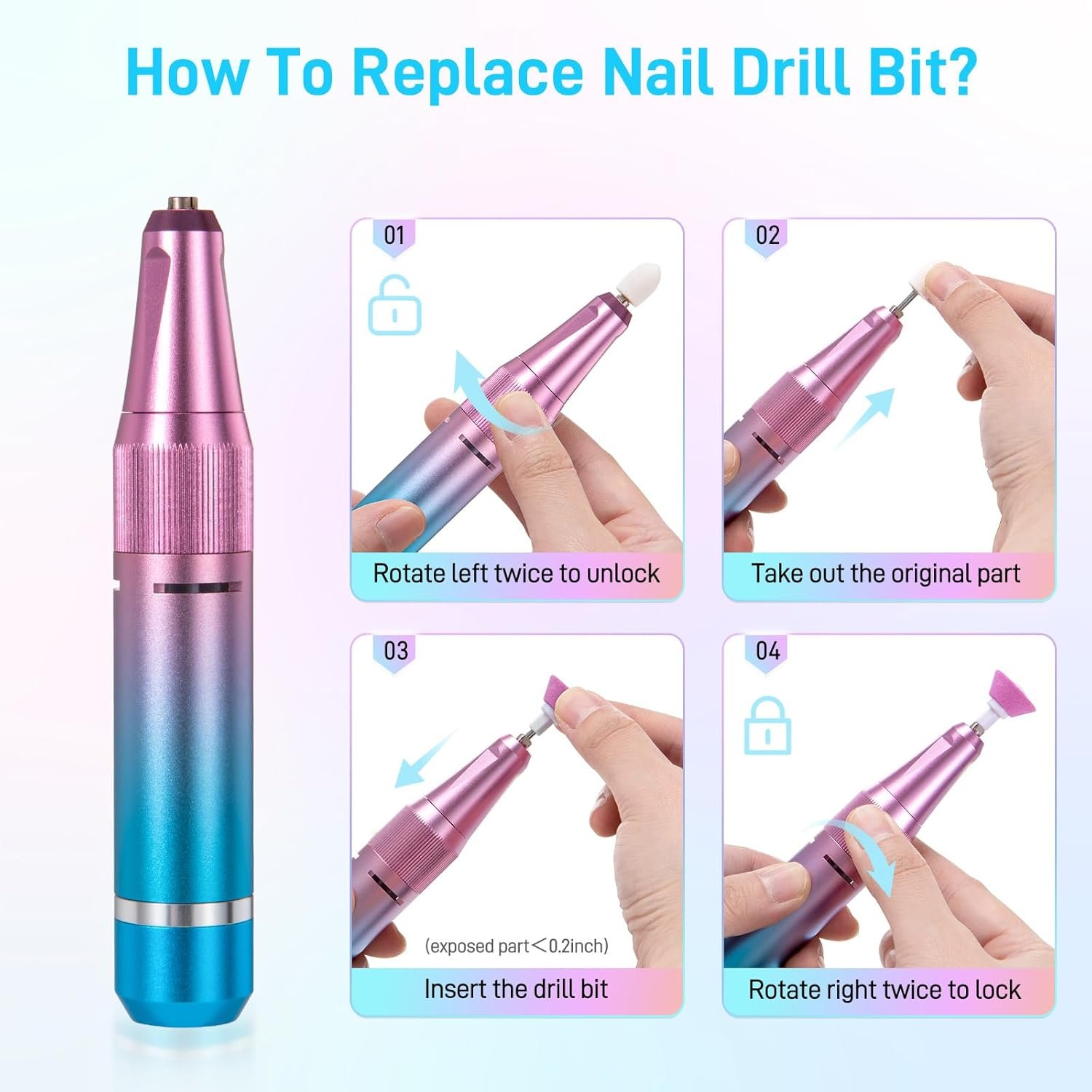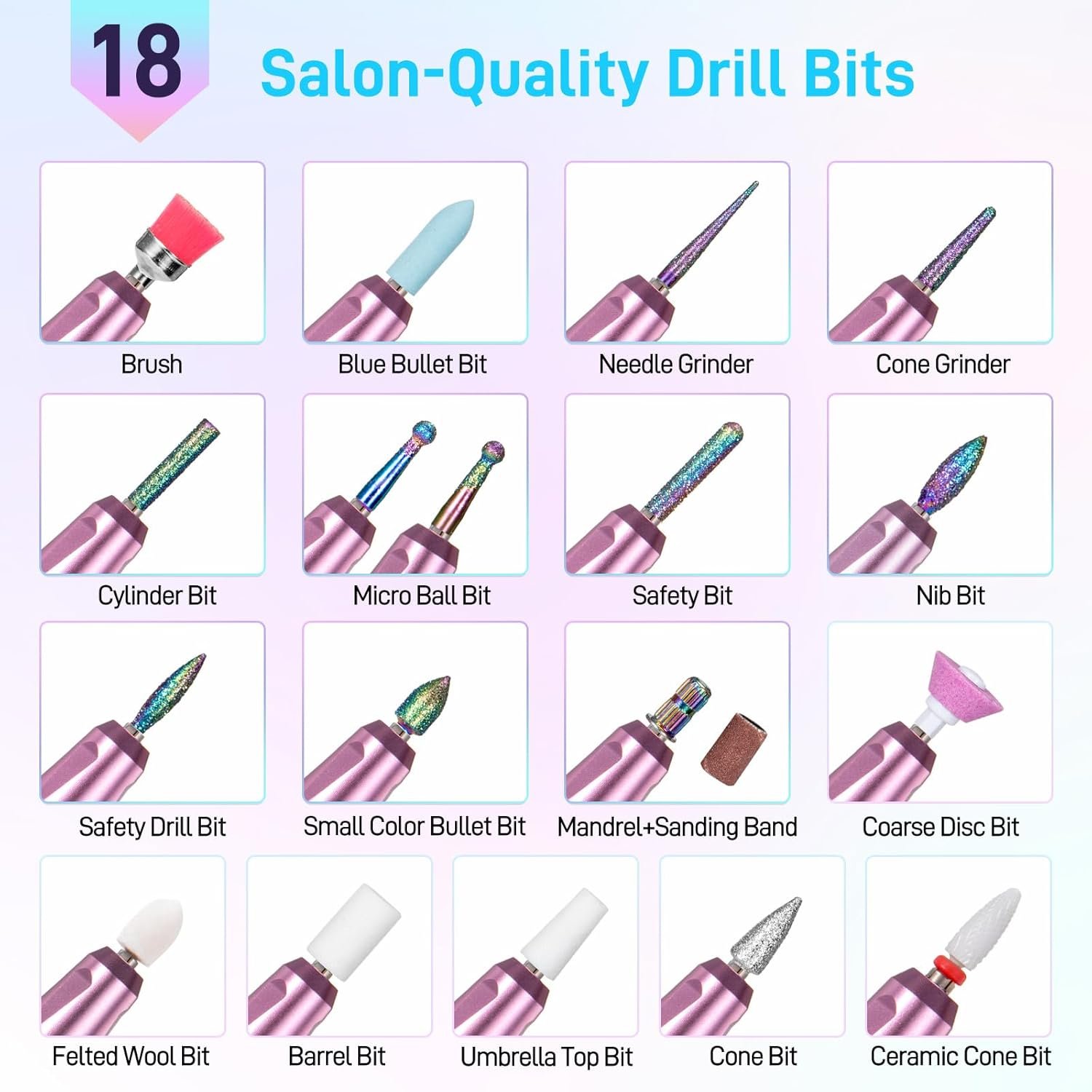 Complete Nail Drill Set: Includes 18 precision-engineered drill bits and 20 sanding bands, making it versatile for a range of applications—shaping, filing, polishing, and more. Perfect for both novices and experienced nail technicians aiming for impeccable results.