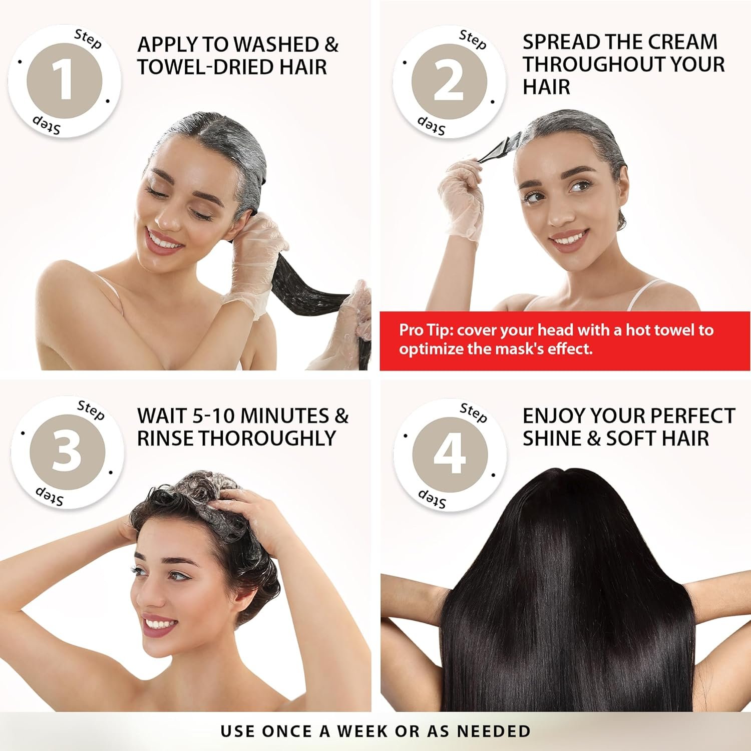 Deeply Conditioning to Heal Hair: Infused with Hydrolyzed Keratin, Silk Protein, Biotin, Collagen, this extra-hydrating deep repair hair mask helps soften the hair by penetrating strands from the inside out. Hair masque helps improve strength and elasticity of tresses