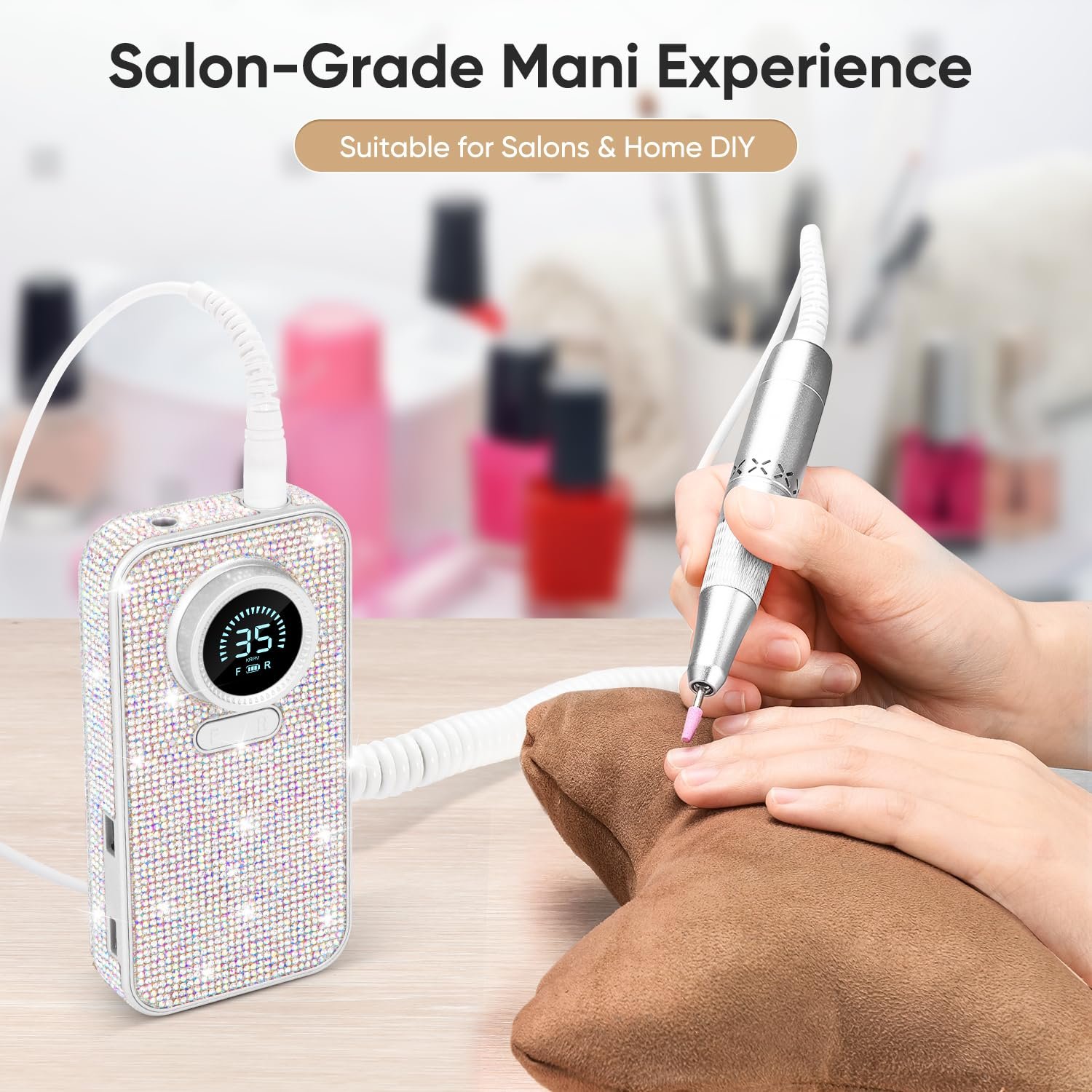 Ergonomic Design: The efile nail drill features an ergonomic handle design that is comfortable to hold and reduces fatigue during long periods of use. The portable nail drill is compact and lightweight, making it easy to carry and operate, suitable for both nail tech and home use.