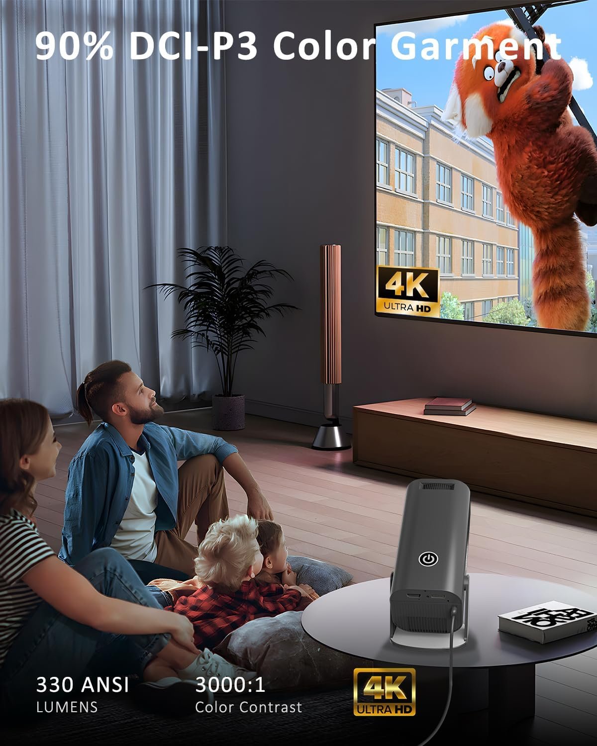 【Ultimate Viewing Experience, Right at Your Fingertips】Introducing the future of audiovisual entertainment, the Projector H500 – a portable outdoor movie projector with ultra-short throw, WiFi, and Bluetooth capabilities. Supporting up to 8K video resolution, it delivers breathtaking image clarity, transforming any space into a personal cinema for a truly immersive viewing experience.