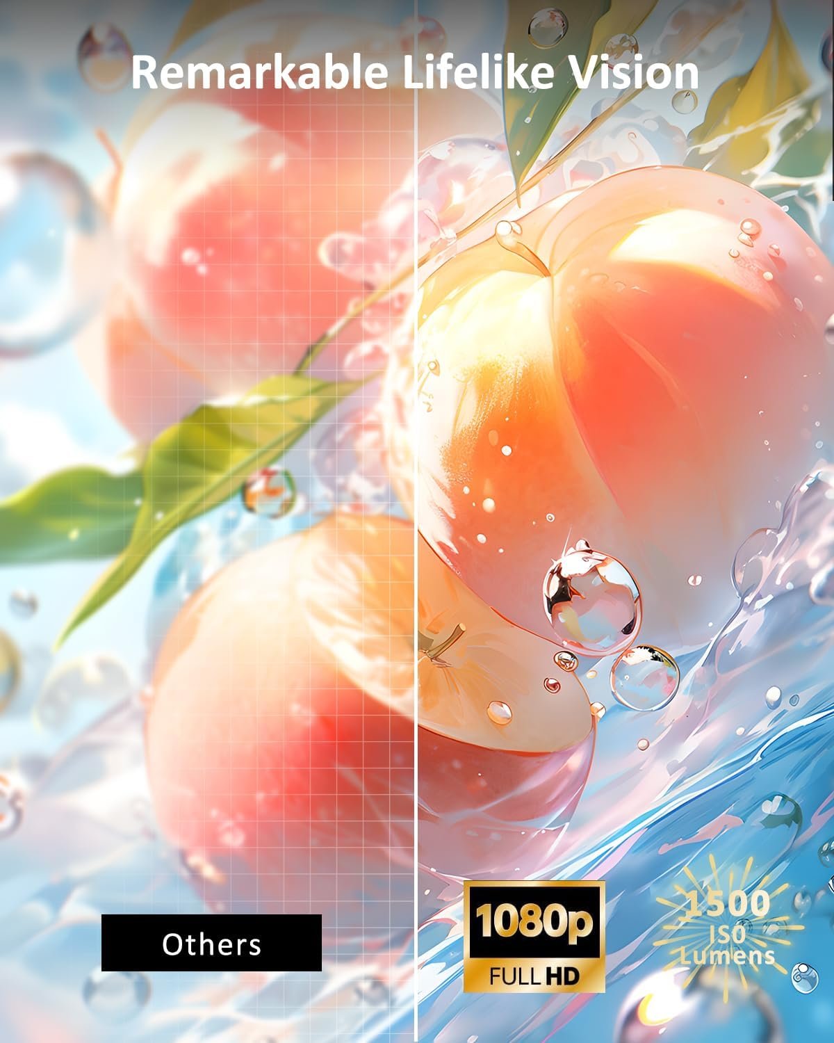 【Stunning HD Quality, True-to-Life Colors】Featuring advanced optical technology and a high-brightness LED light source, the H500 projector delivers vibrant colors and exceptional contrast, ensuring every frame is packed with detail and depth. From watching movies to presenting slideshows or gaming, it brings a new level of realism and engagement to your visual entertainment.