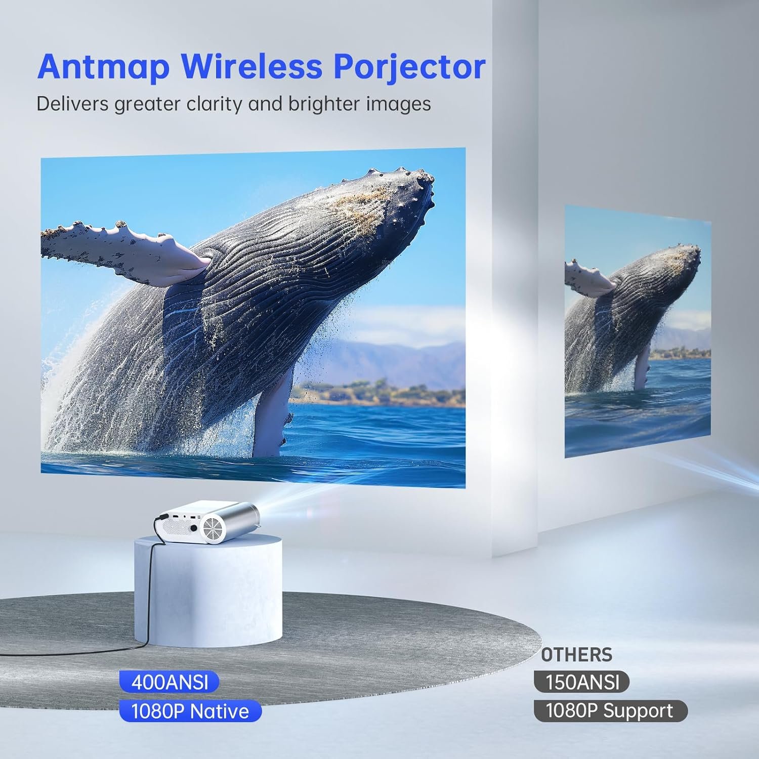 【Bluetooth 5.1 & HiFi Stereo Speaker】The bluetooth projector wireless has built-in powerful stereo speakers and Bluetooth 5.1 chip, and offer you with the best sound effects and excellent auditory sense experience. You can also connect it to external speaker by Bluetooth to enjoy movies anywhere without having to worry about cables getting tangled or tripping over.