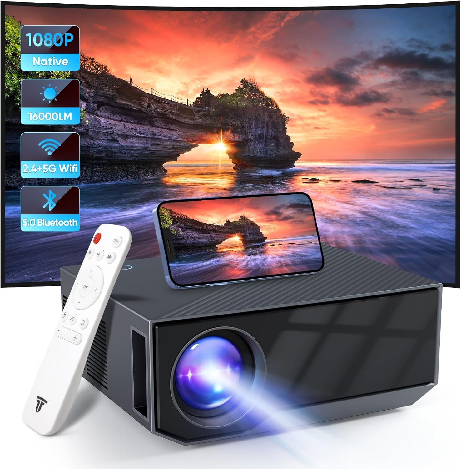 ★【A Projector Works in the Daytime】 This projector has real native 1080P resolution and 16000 Lumens strong light source, they are real specification and not false. It has a very good vision even in a bright room. With the latest color reproduction technology, every detail on the screen is accurately restored to ensure a real and color-vibrant viewing effect. Users will be impressed with its picture quality.
