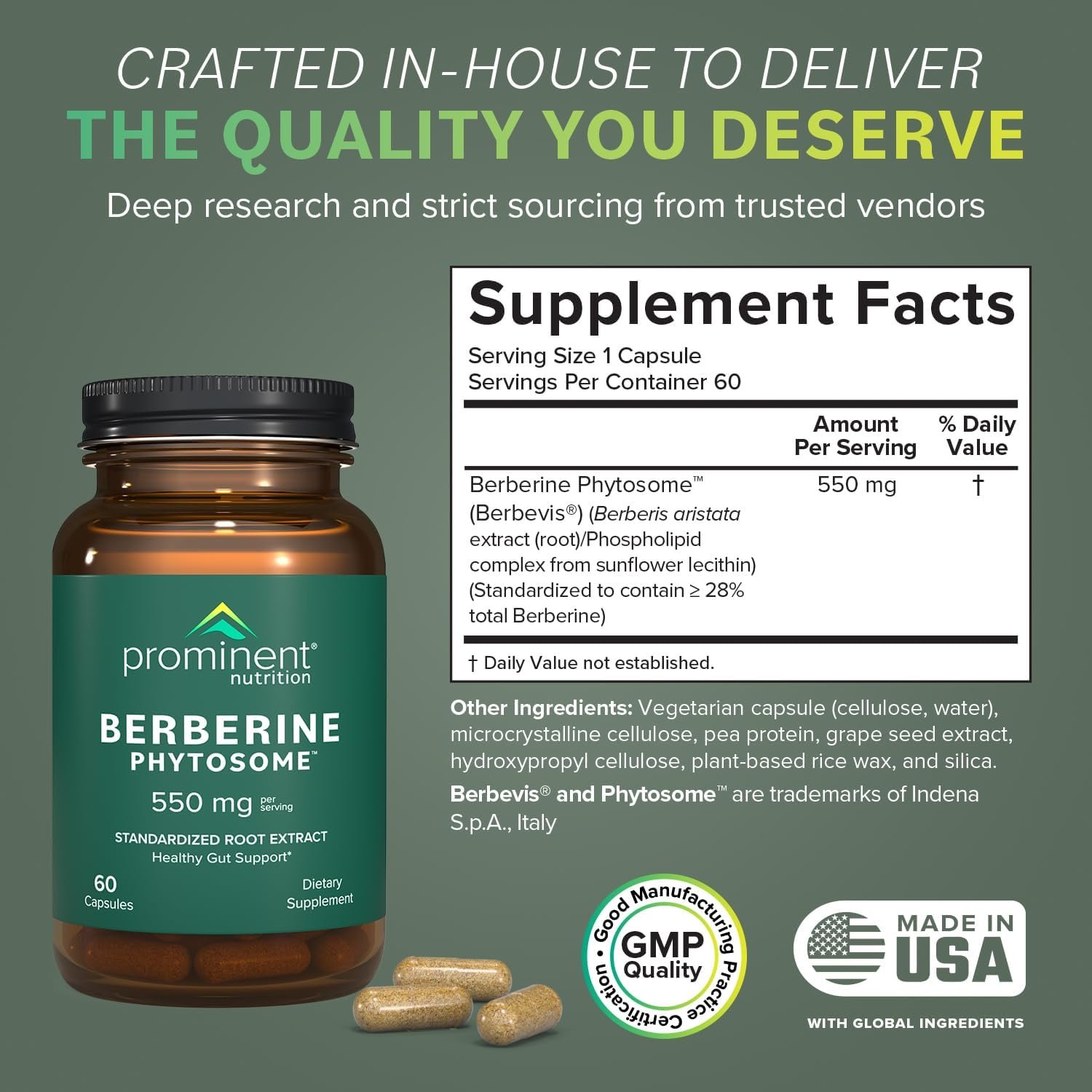Extensively Tested for Purity — Unlike most generic berberine supplements, you’ll find no GMOs or unnecessary additives here. Prominent Nutrition’s Berberine for women and men undergoes strict testing for quality and potency. Our optimized dose is guided by scientific research to ensure you get the most out of your berberine complex.