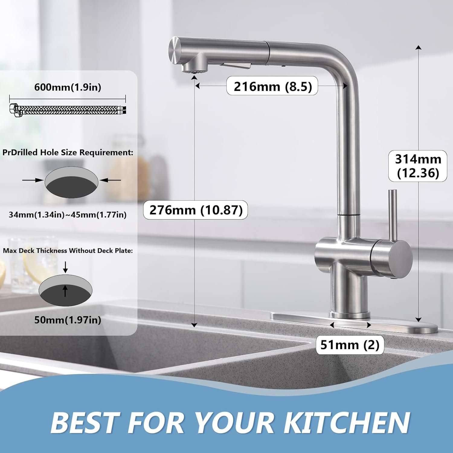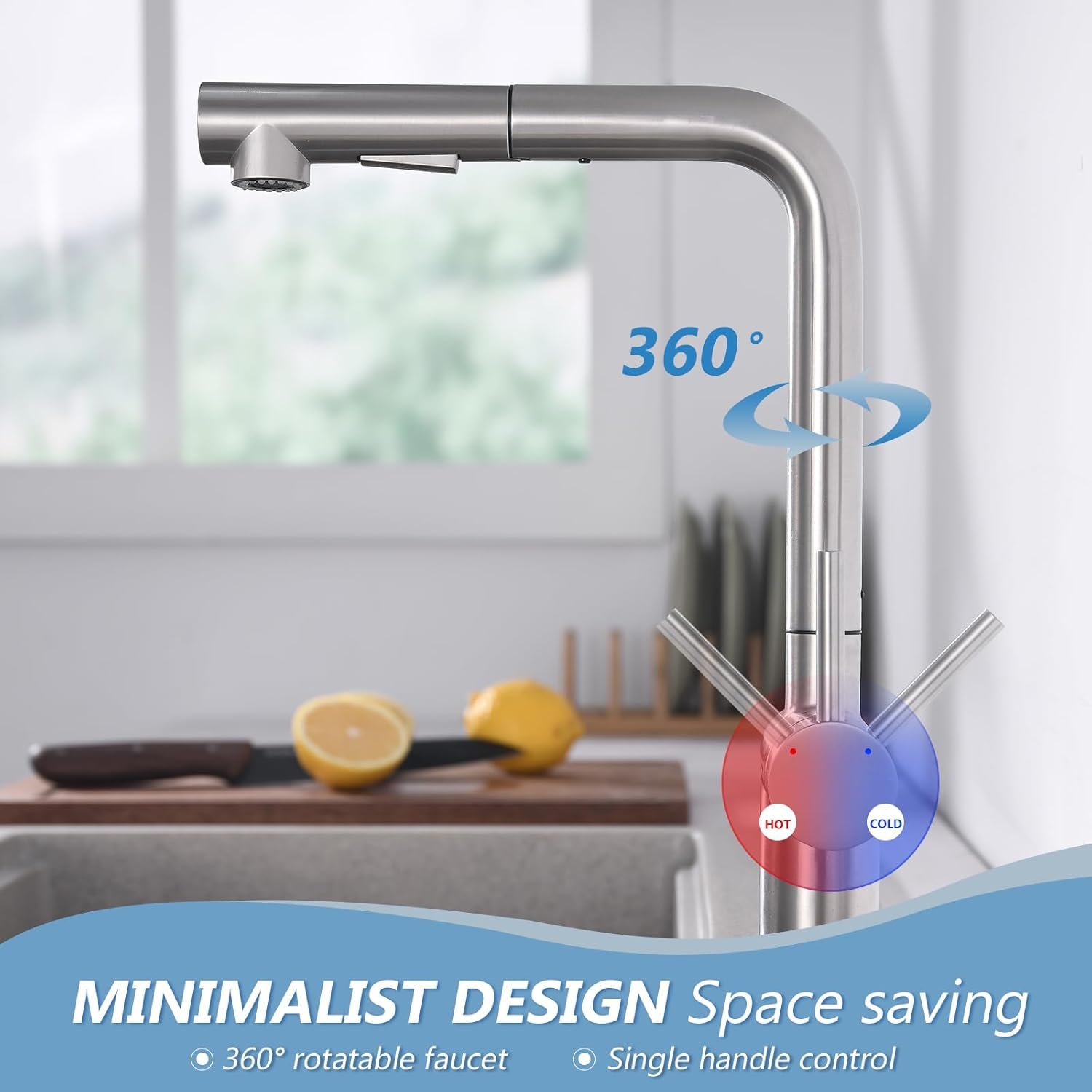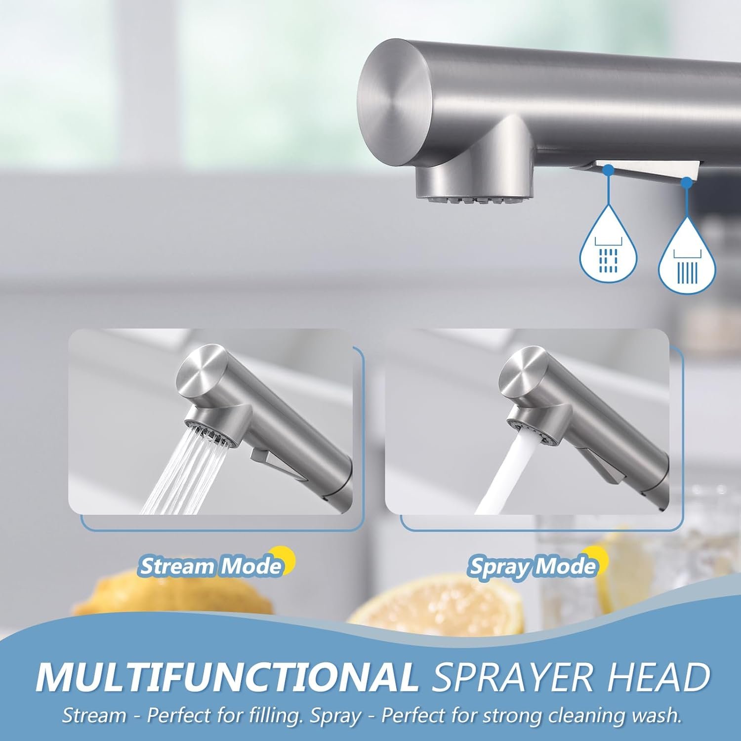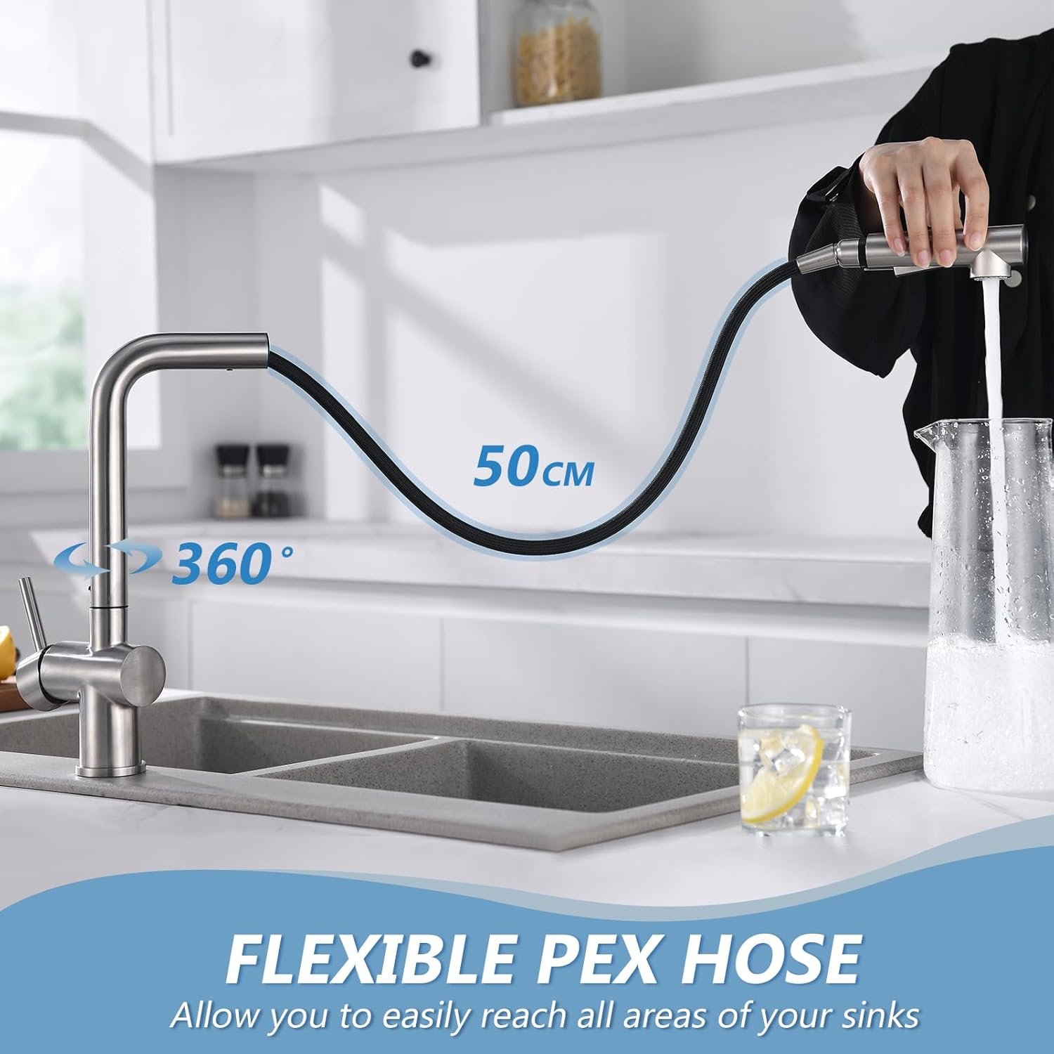 【Health is Important】Aktines kitchen faucets are made of 304 stainless steel, safe and lead-free, no corrosion and exudation, no odour or turbidity problems; will not cause secondary pollution to the water, keep the water pure and hygienic