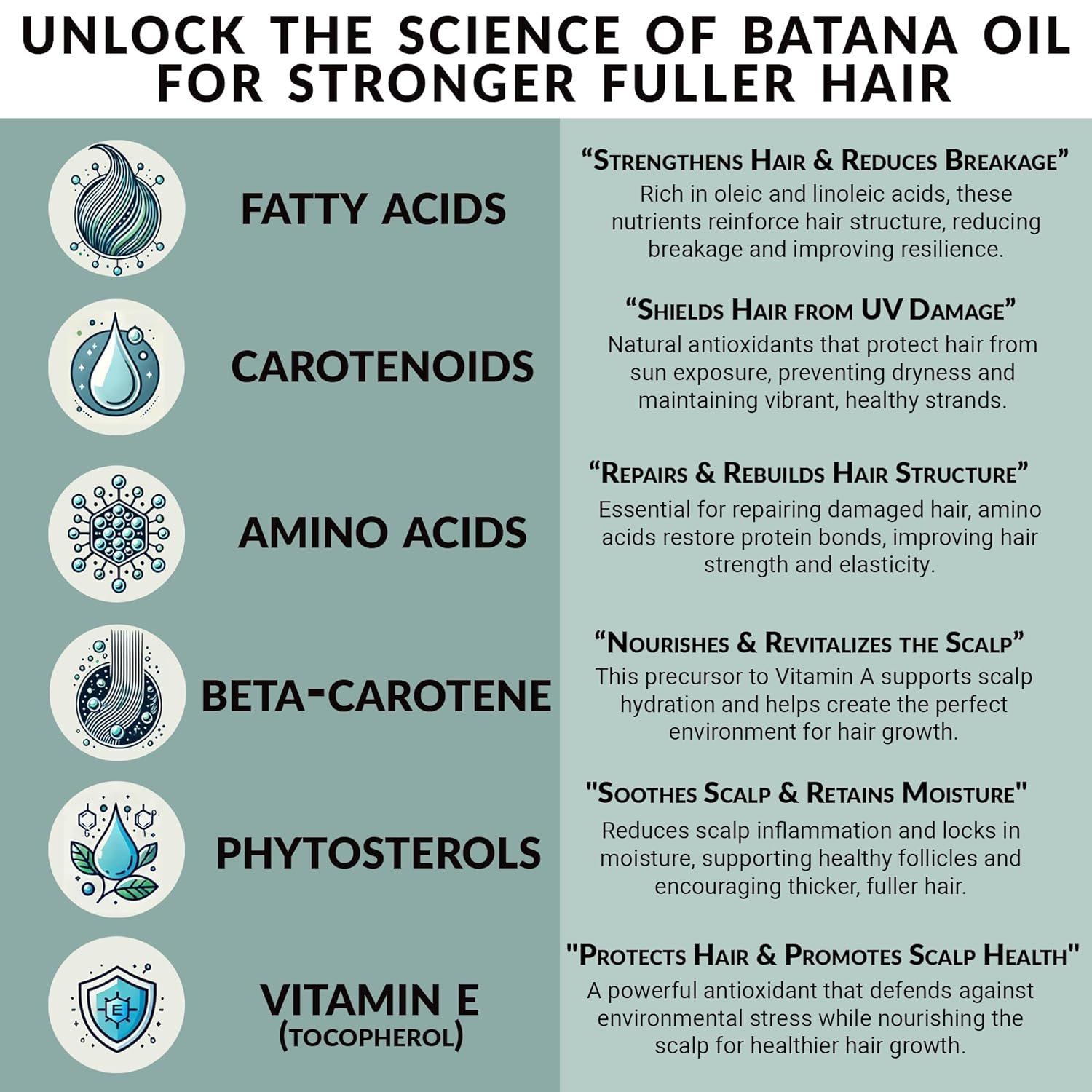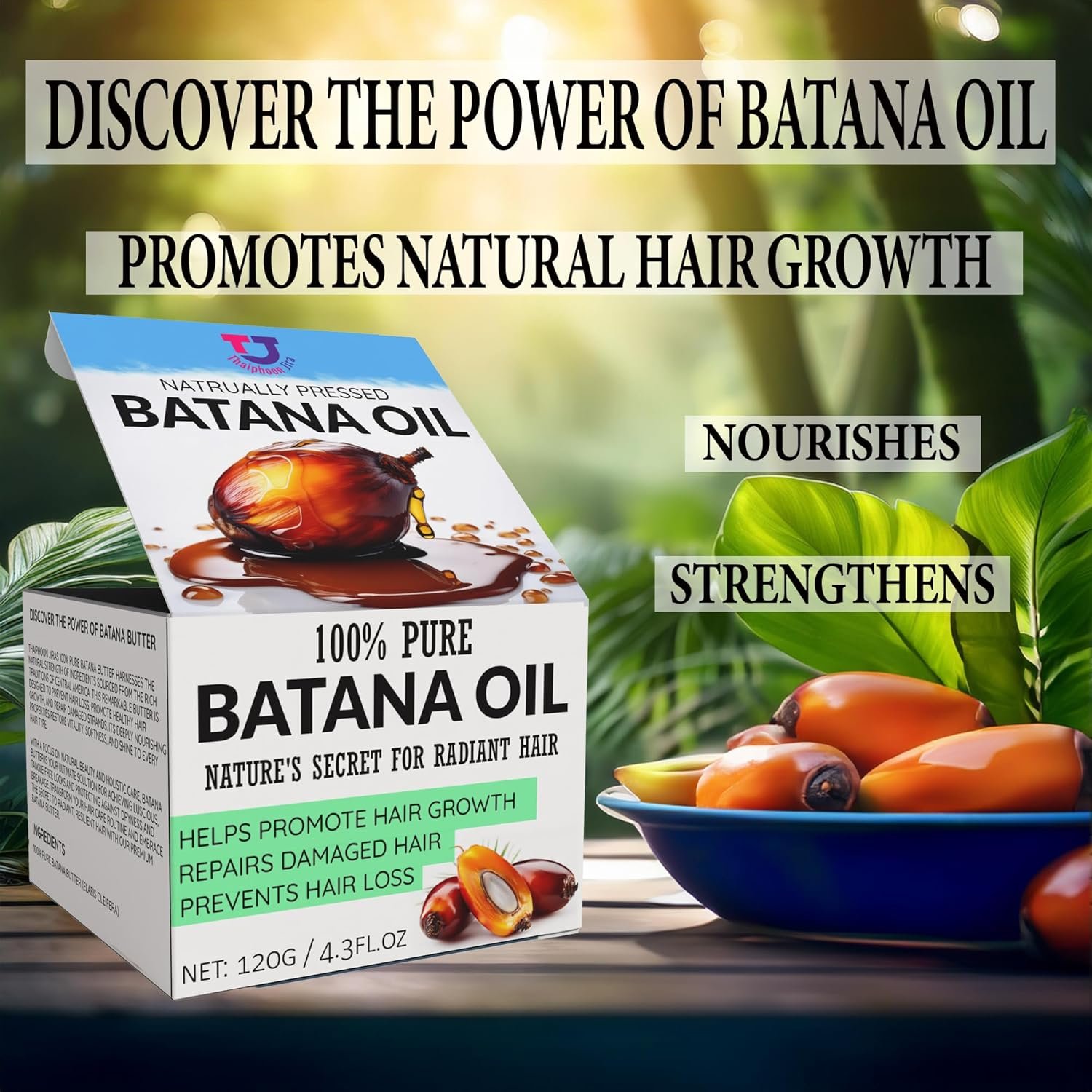 The high concentration of Omega-9 fatty acids in batana oil is vital for repairing damaged hair. Omega-9 is known to enhance hair’s resilience and strength by filling in the gaps of damaged hair strands. It helps restore shine, smoothness, and flexibility, which are often lost due to over-styling, heat exposure, or chemical treatments. By regularly applying batana oil, you can help revive brittle and lifeless hair, ensuring it feels stronger, softer, and healthier with every use.