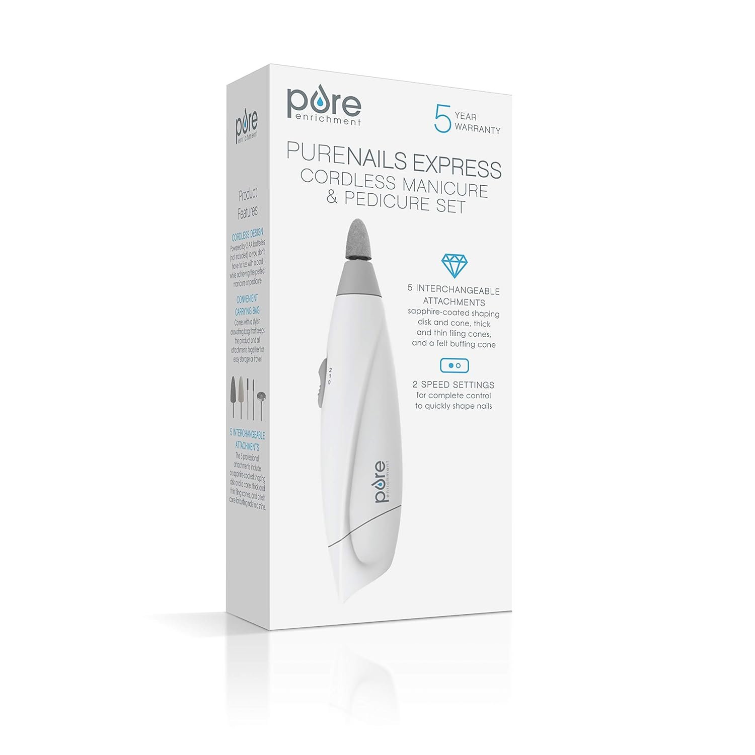 5 Interchangeable Attachments: Includes a sapphire shaping disc, sapphire cone, thick filing cone, thin filing cone, and a felt cone for buffing nails to a shine