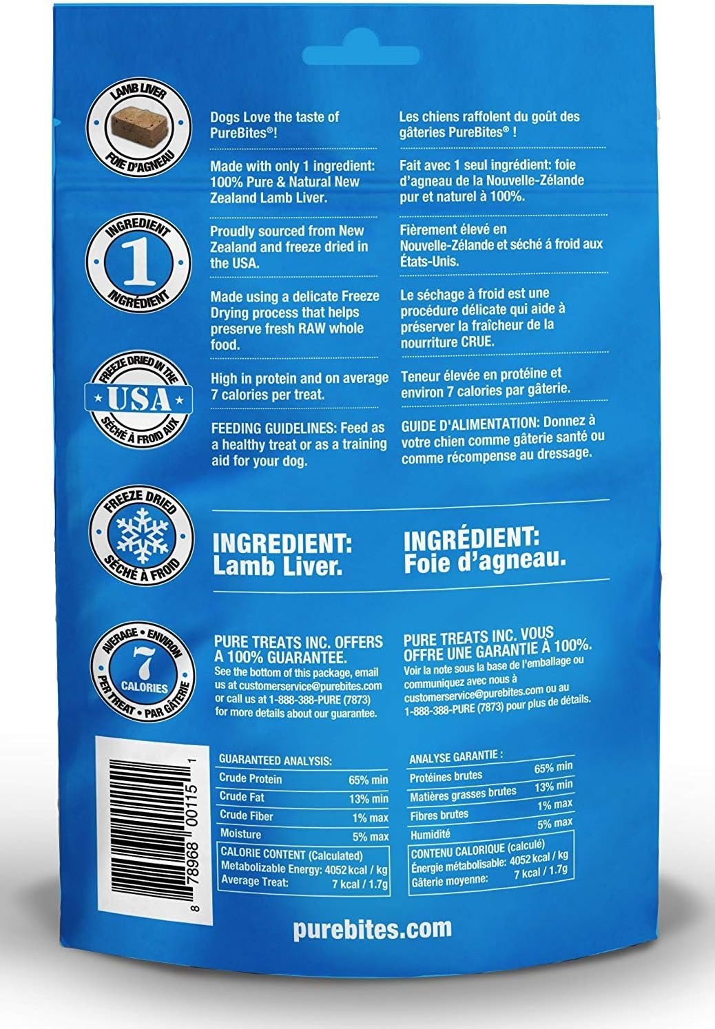 Pure Bites are made with only 1 ingredient; 100% Pure New Zealand Lamb Liver Freeze Dried in the USA. Dogs love the taste of Pure Bites because our treats are freeze dried RAW to lock in the aroma, texture and freshness they crave. Dog parents love Pure Bites because our treats are 100% pure and rich in nutrients for a happy and healthy life.