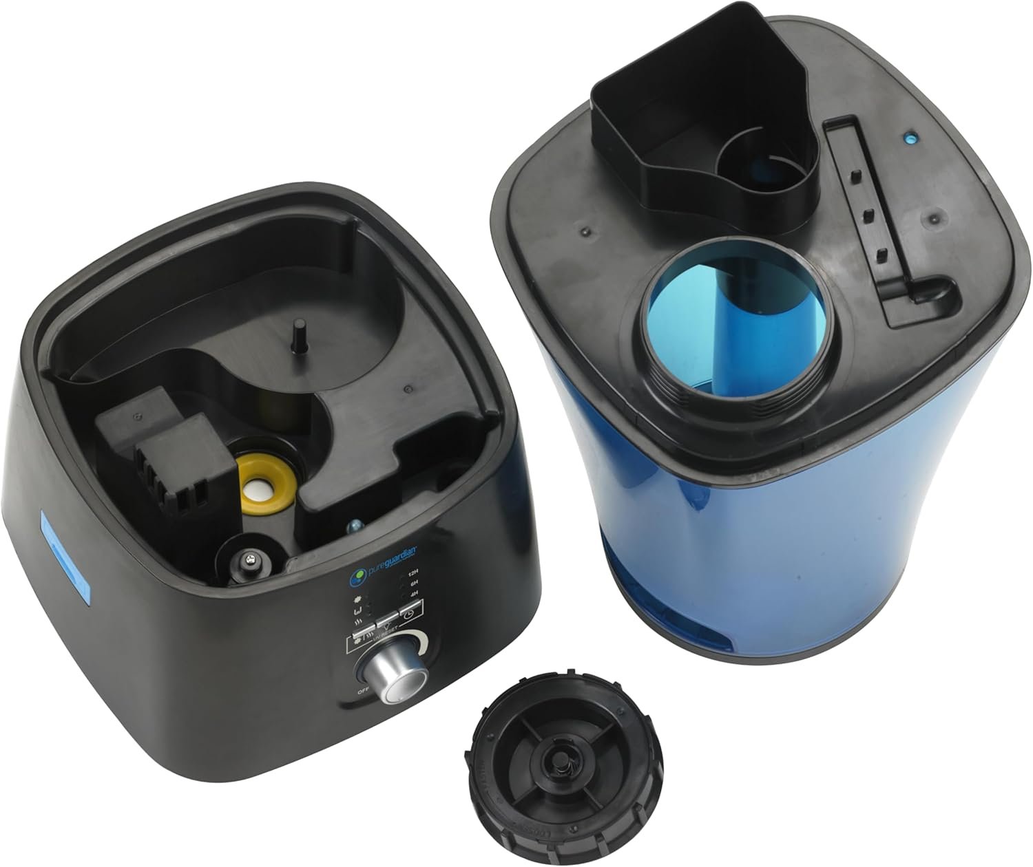 The 100-hour* Ultrasonic Warm and Cool Mist Humidifier guards against problems caused by dry air in the home. It features an easy to fill large 2 gallon tank, ideal for use in medium to large rooms. A UV-C Light reduces germs to emit a cleaner mist while Silver Clean™ Protection is embedded in the tank to help keep your humidifier tank cleaner longer. Thanks to ultrasonic technology, it disperses a fine mist into the air, and is ultra-quiet making it ideal to have on while you sleep. This humidifier has an optional aromatherapy tray so a few drops of essential oil can be added to create a relaxing atmosphere. It is equipped with the option for warm or cool mist and 3 speed settings. A low water indicator light lets you know when it’s time to refill the water tank. It also features a soft glow night light, and a timer. PureGuardian® humidifiers create a better home environment for those suffering from colds, allergies and dry skin. Note: Run time is based off of running the unit on low setting and cool mist, also depends on atmospheric conditions. PureGuardian® aromatherapy oils are not included and must be purchased separately. Do not add oils to the humidifier tank as they can damage the humidifier and void the warranty. Only add essential oils to the pad that is included with the unit. Additional essential oil pads are available separately.