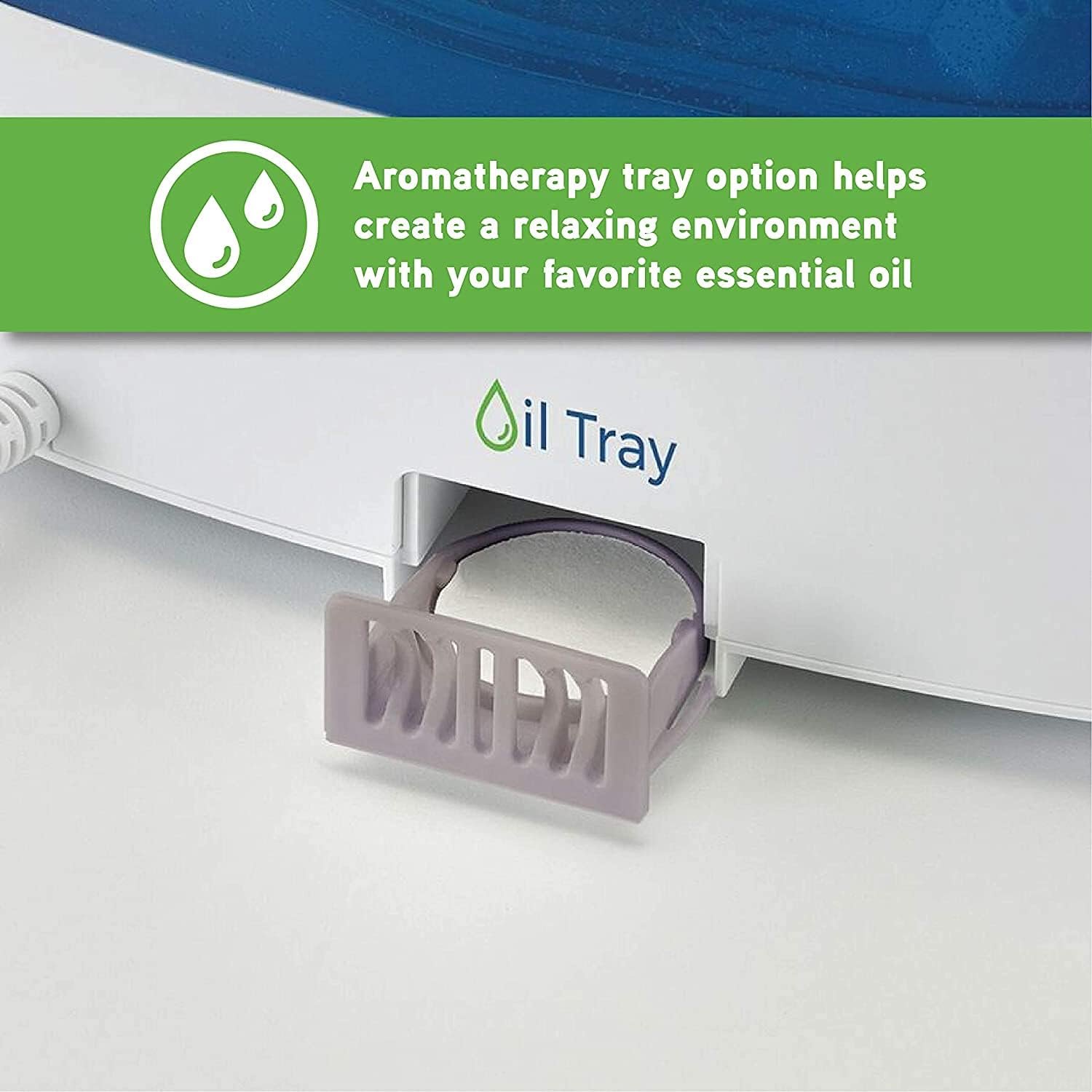AROMATHERAPY TRAY: The aromatherapy tray option helps create a relaxing environment with your favorite essential oil. Oils are not included. Create a better home environment and optimize your comfort with an ultra-quiet, soothing warm or cool mist