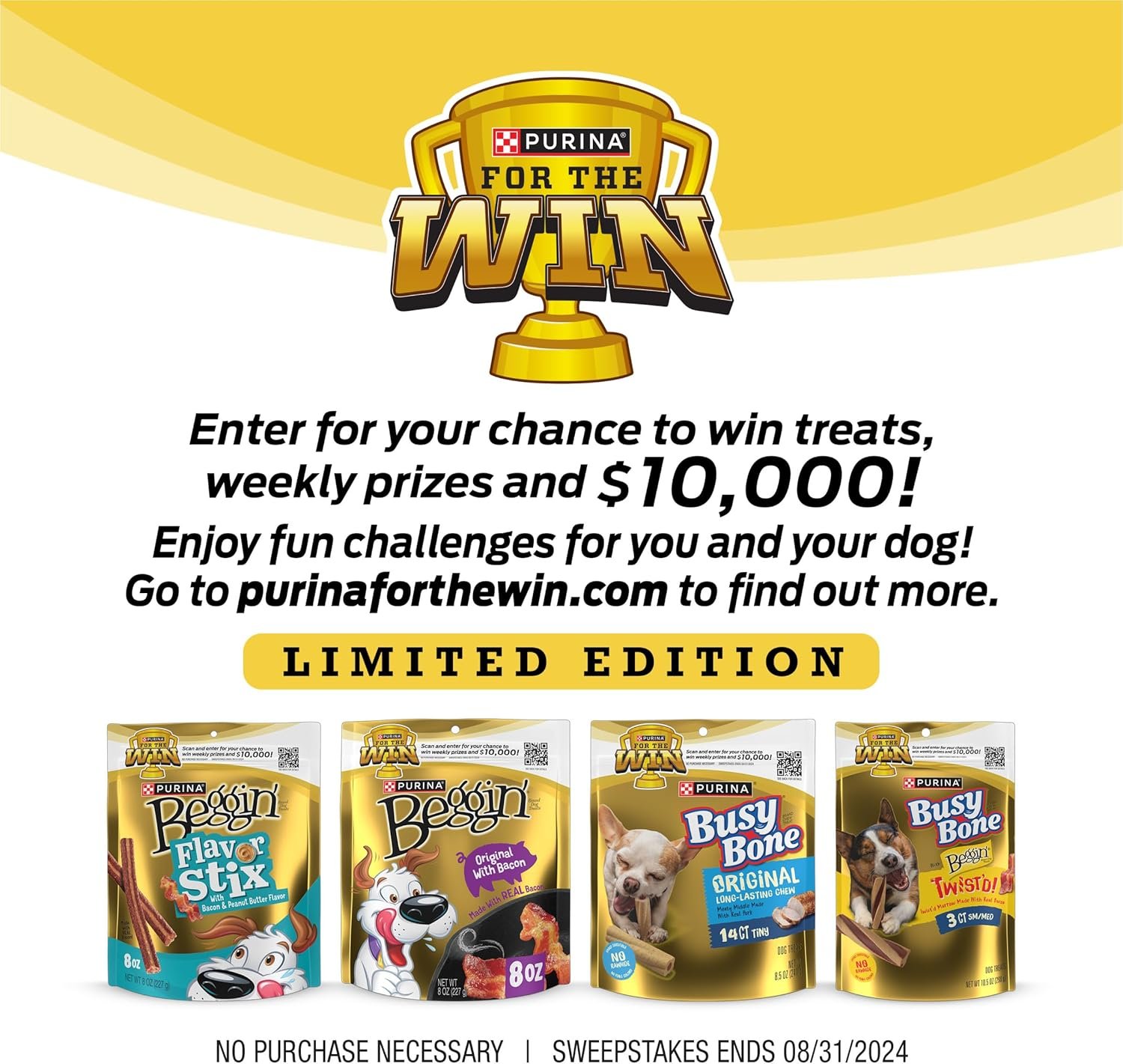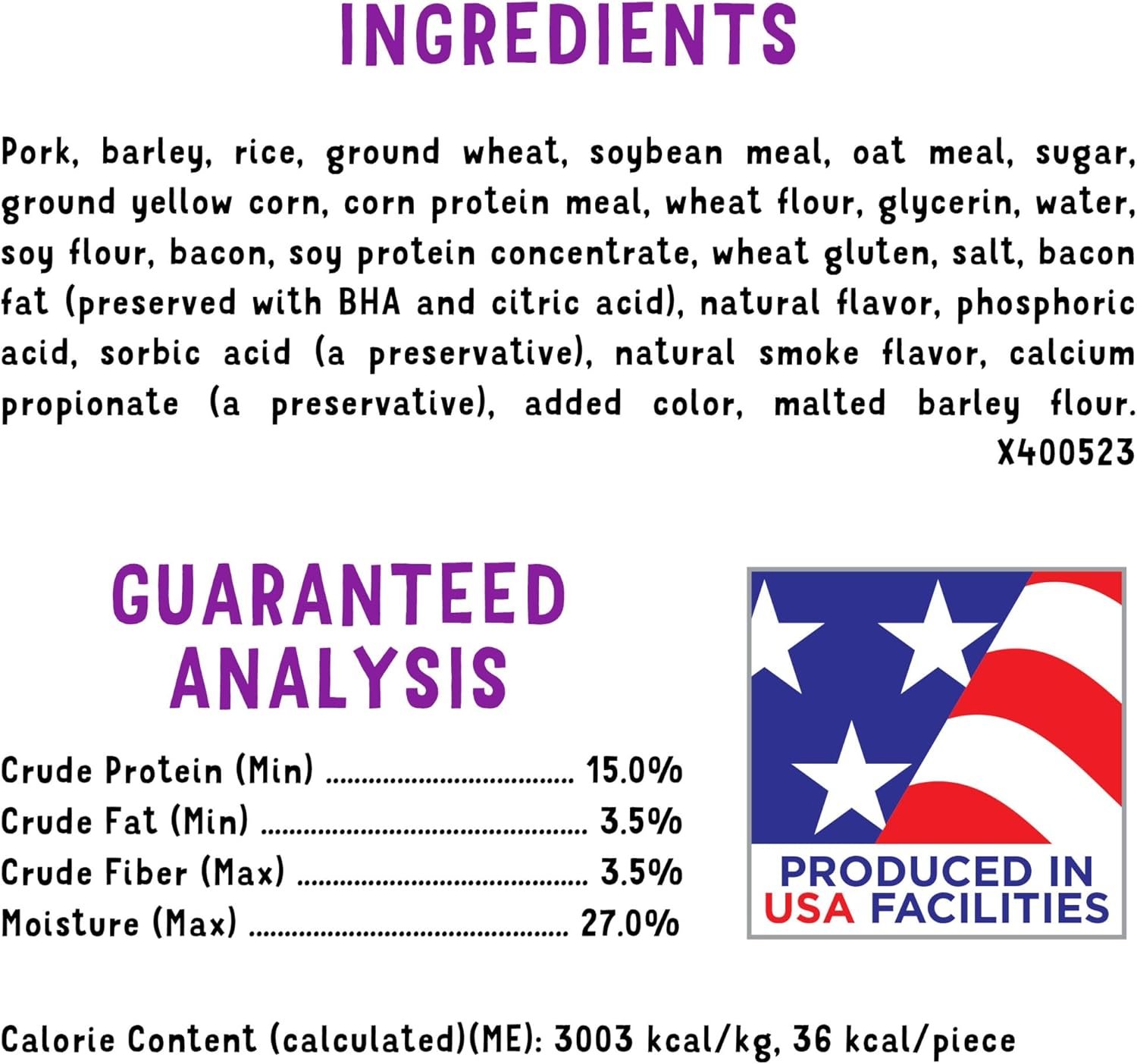 Get your dog dancing with joy when you hand over Purina Beggin’ Strips Original With Bacon adult dog treats. Our irresistible Beggin’ bacon flavor jerky dog treats feature real meat as the first ingredient and offer the tantalizing taste of real bacon. Watch him go hog wild at the first sniff of bacony goodness in these chewy snacks for dogs, and feel good about giving him soft chewy dog treats made with no artificial flavors or FD and C colors. Toss him one of these Beggin’ Strips jerky treats for dogs as a snack between meals, or tear the soft chews for dogs into smaller pieces for the ultimate yummy reward. With the look and taste of real bacon, these flavored soft dog treats get tails wagging and tongues lolling just like Hamlet, Beggin’s bacon-loving mascot. Listen for the sound of running paws as the rich aroma of these Purina Beggin’ Strips bacon flavor dog jerky treats calls out to your buddy with the promise of tail-wagging flavor he just can’t resist.