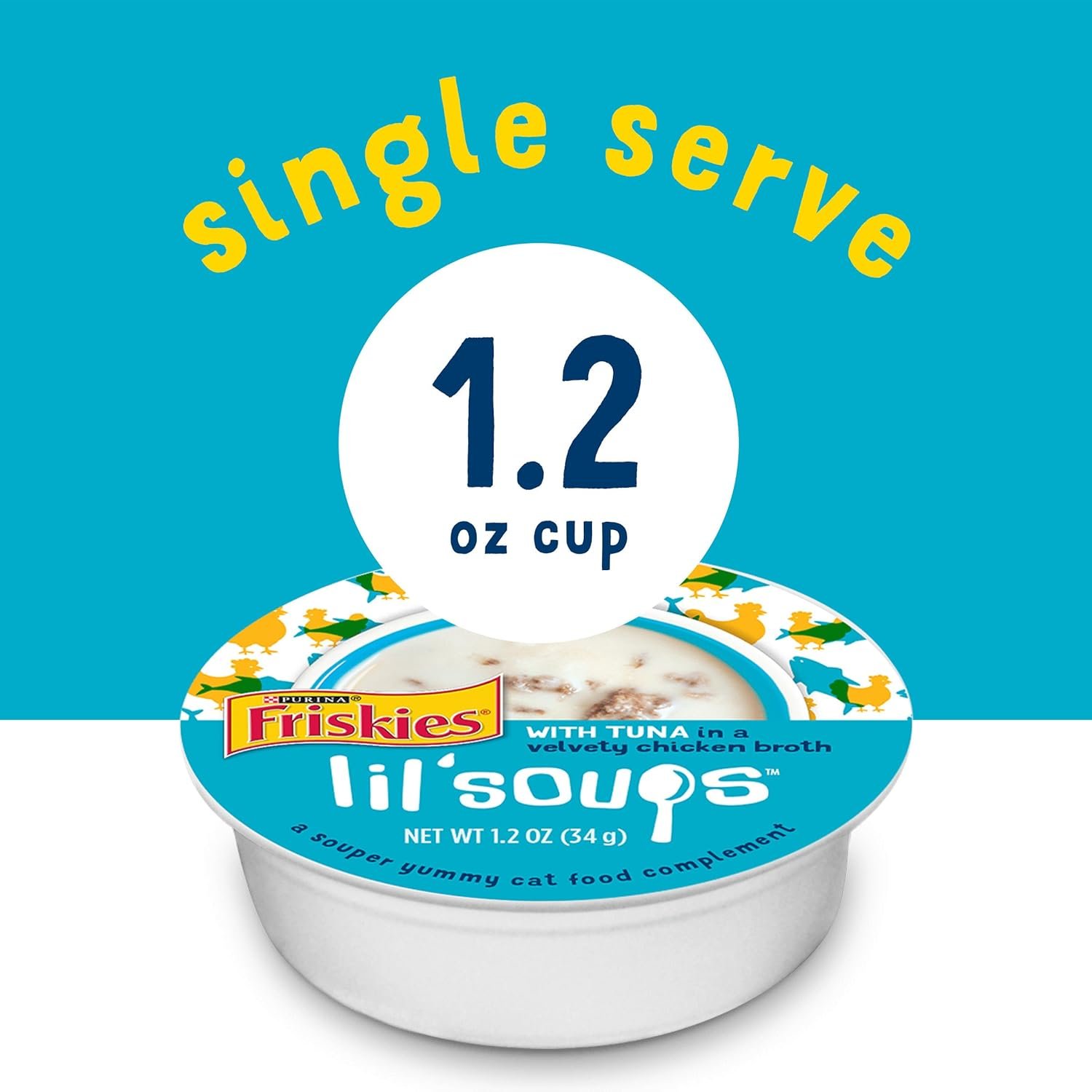 Friskies Lil Soups for cats are formulated for adult cats and intended as a complement to your cat’s complete and balanced diet