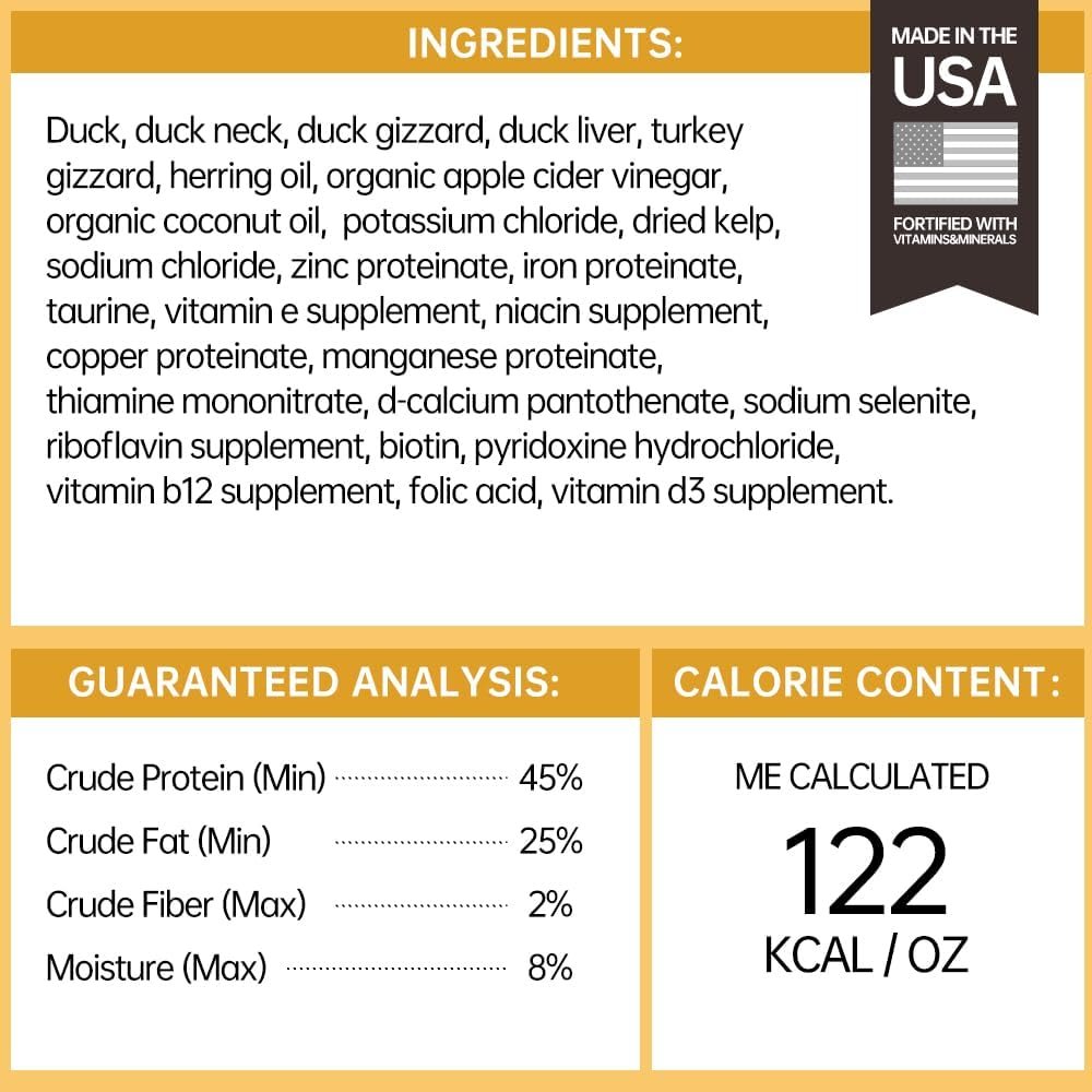 Unparalleled Nutrition with PURE PURPOSE – Our PURPOSE freeze dried raw cat food, featuring premium duck meat, organs, and bones, delivers high-protein benefits for your cat’s optimal health. This product excludes grains, fillers, and artificial additives, ensuring a meal that’s as close to nature as possible.