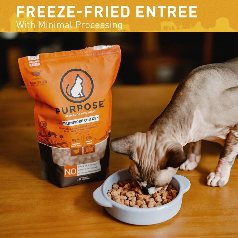 Effortlessly Convenient & Digestible – With our easy-to-serve PURPOSE freeze dried cat food, offer your feline the benefits of a raw diet without the hassle. Perfect as a complete meal or a nutritious supplement to their current diet, this digestible formula requires no refrigeration, making mealtime effortless.