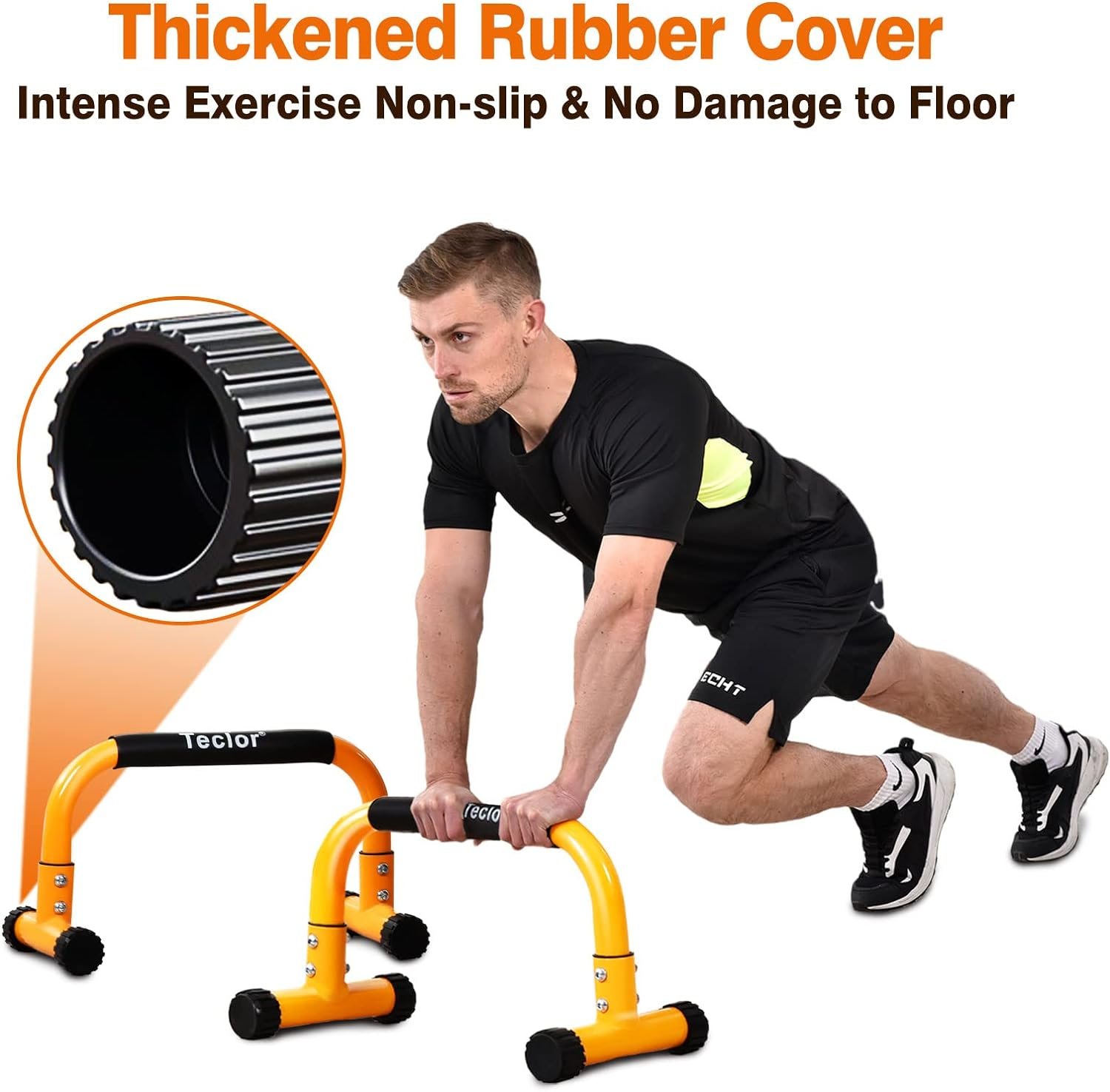 😉【Heavy-duty & Stable Design】 Teclor push up bar can carry up to 660LBS. It is made of fully welded heavy duty steel. The thickness of the steel tube is 2mm, real manual measurement, absolute commercial material. Ergonomic design provides absolute stability. Two screws on each side versus one and great bar diameter to increase the stability of the push-up bar.