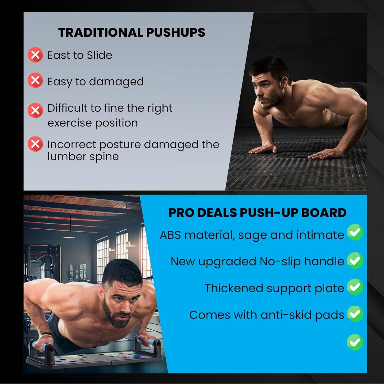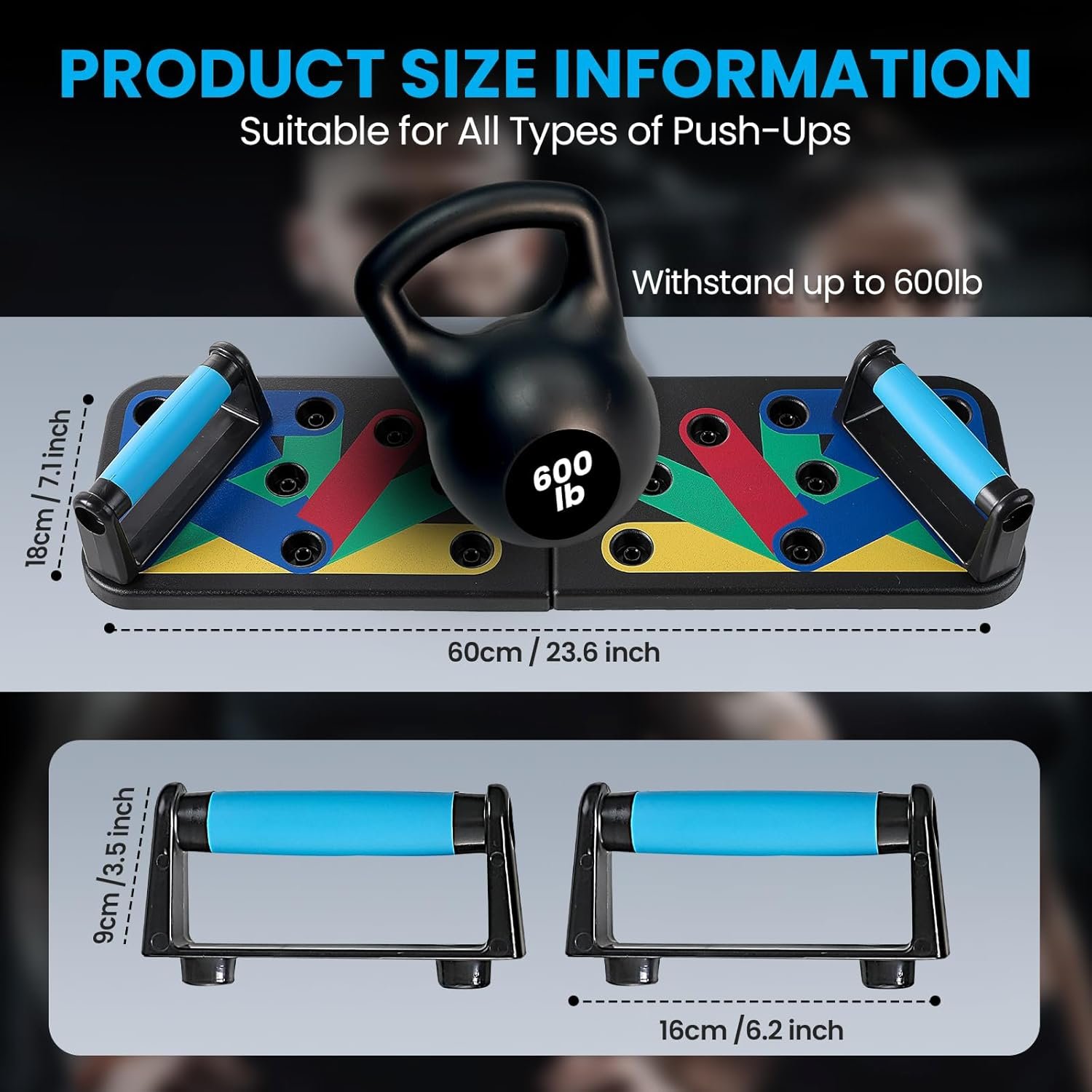 UPGRADED MULTIFUNCTIONAL PUSHUP BOARD: The pushup board design is an upgraded version of pushup bars with color coded guide, The stable pushup handles are with symmetric positions for exercising different body parts like abs, wrist, chest, finger strength, pectorals and abdominals.