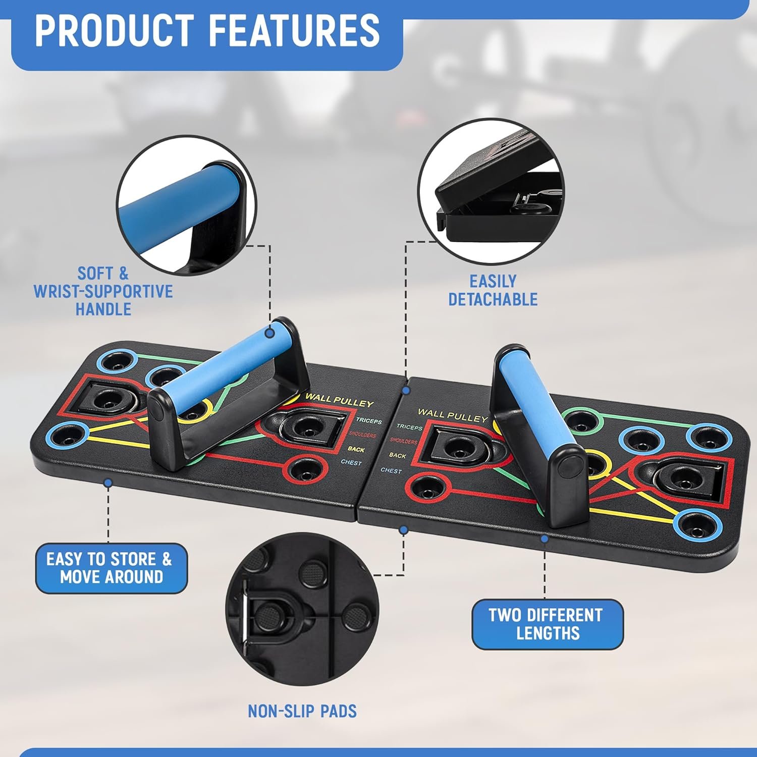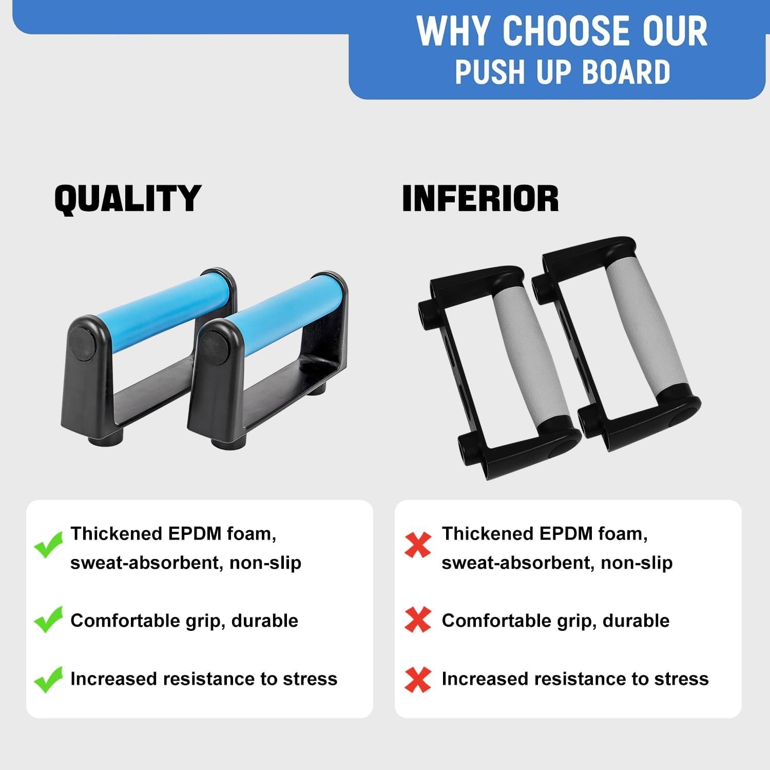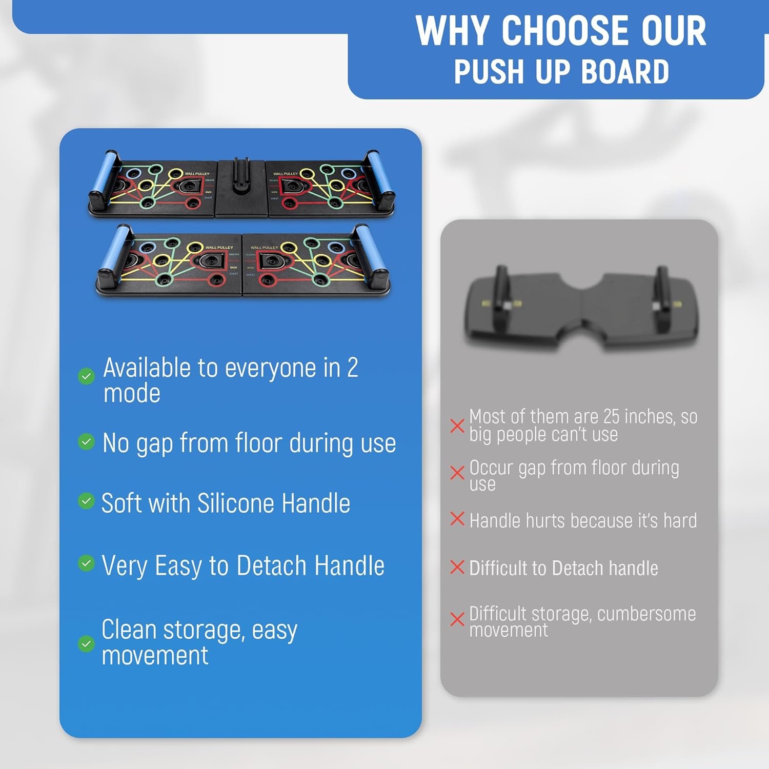 Dual Modes : Features a versatile push-up board with dimensions catering to all fitness levels,offering two distinct modes. Built with high-grade materials ensuring durability. Offers color-coded options for targeted exercises.