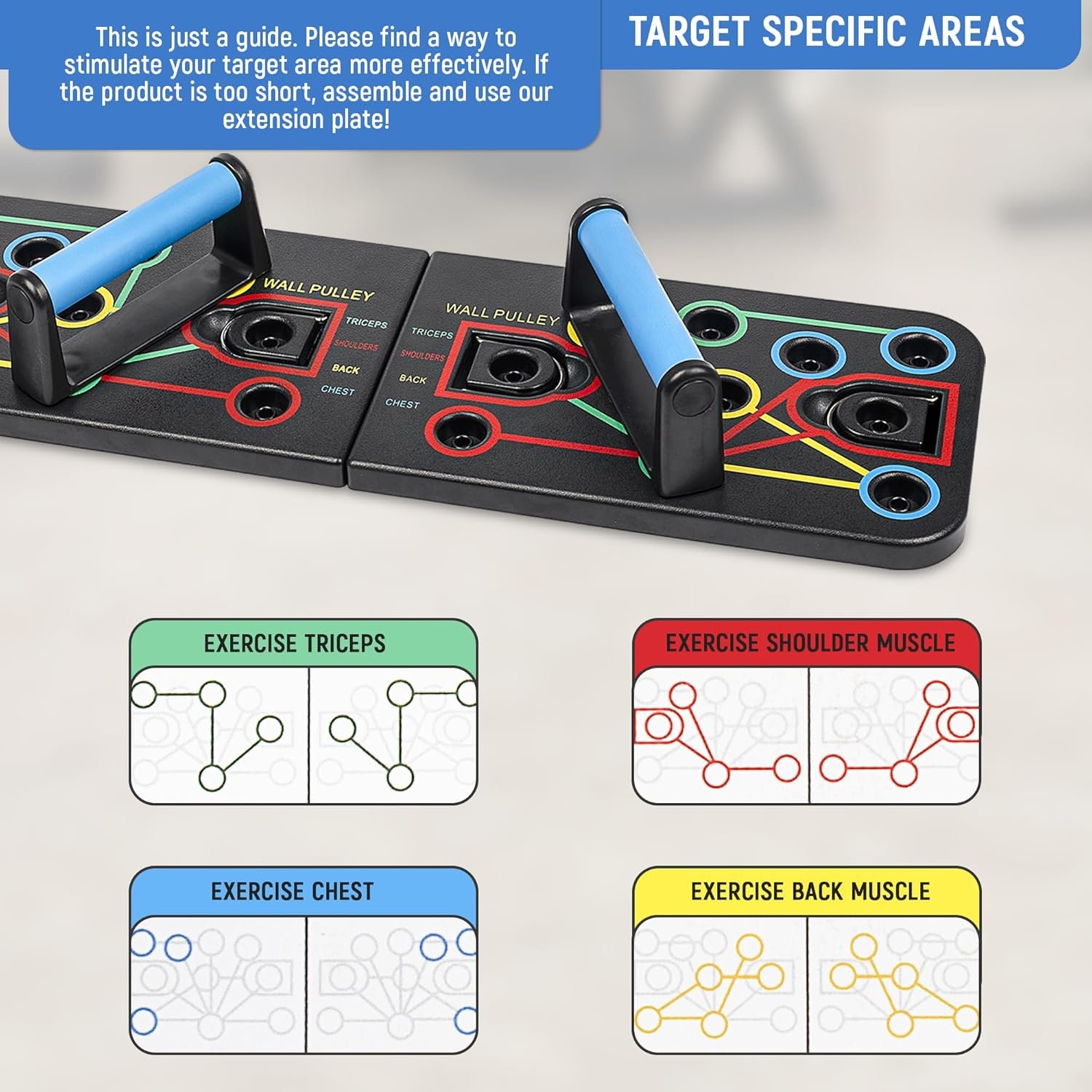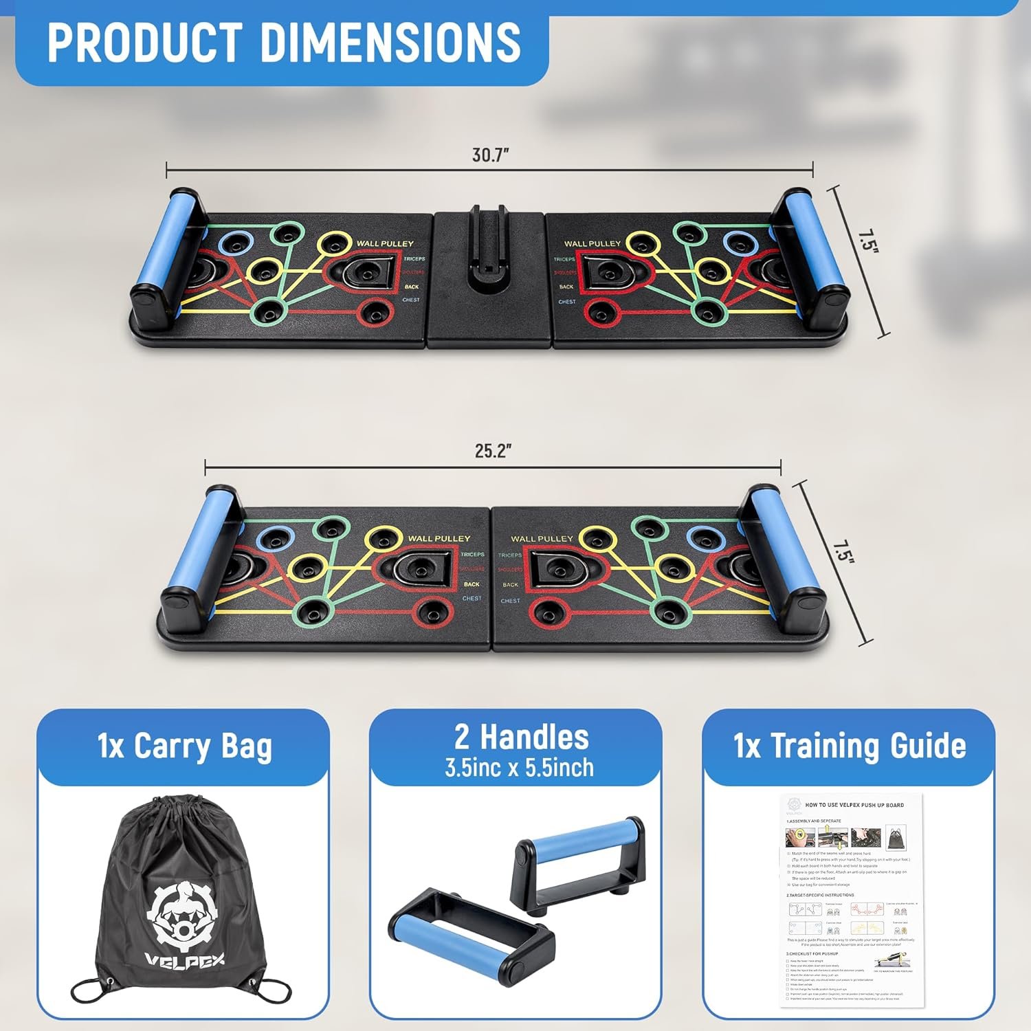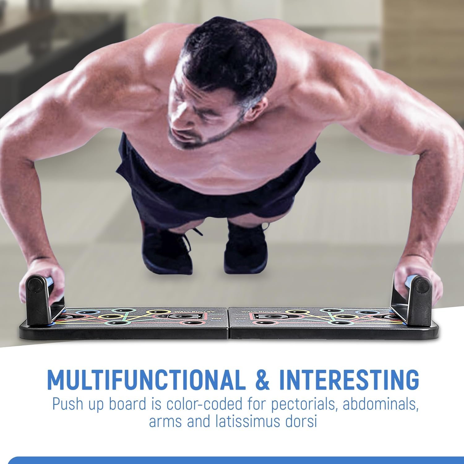 Dual Modes : Features a versatile push-up board with dimensions catering to all fitness levels,offering two distinct modes. Built with high-grade materials ensuring durability. Offers color-coded options for targeted exercises.