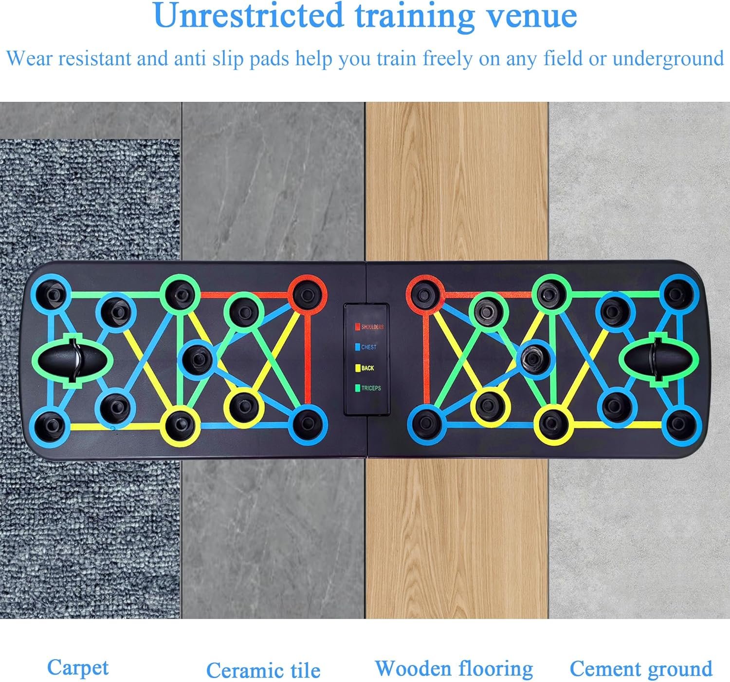 Transform your workouts with this revolutionary push-up board! Designed with adhesive-backed grip pads, it stays firmly in place on any surface, from wood and tile to carpet and concrete, ensuring zero sliding during high-energy sessions. Whether you’re a fitness enthusiast or just starting out, this board provides unmatched stability and convenience. Compact, portable, and perfect for any floor, it’s a game-changer for anyone looking to elevate their training routine.
