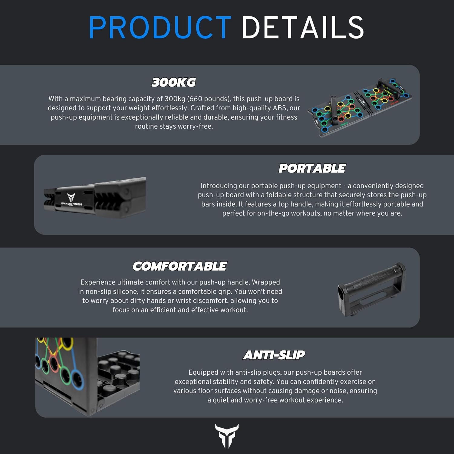 – FULL-BODY WORKOUT: Engage your core, chest, back, and arms with precision thanks to the color-coded pushup positions. Achieve a well-rounded, total-body workout with ease.