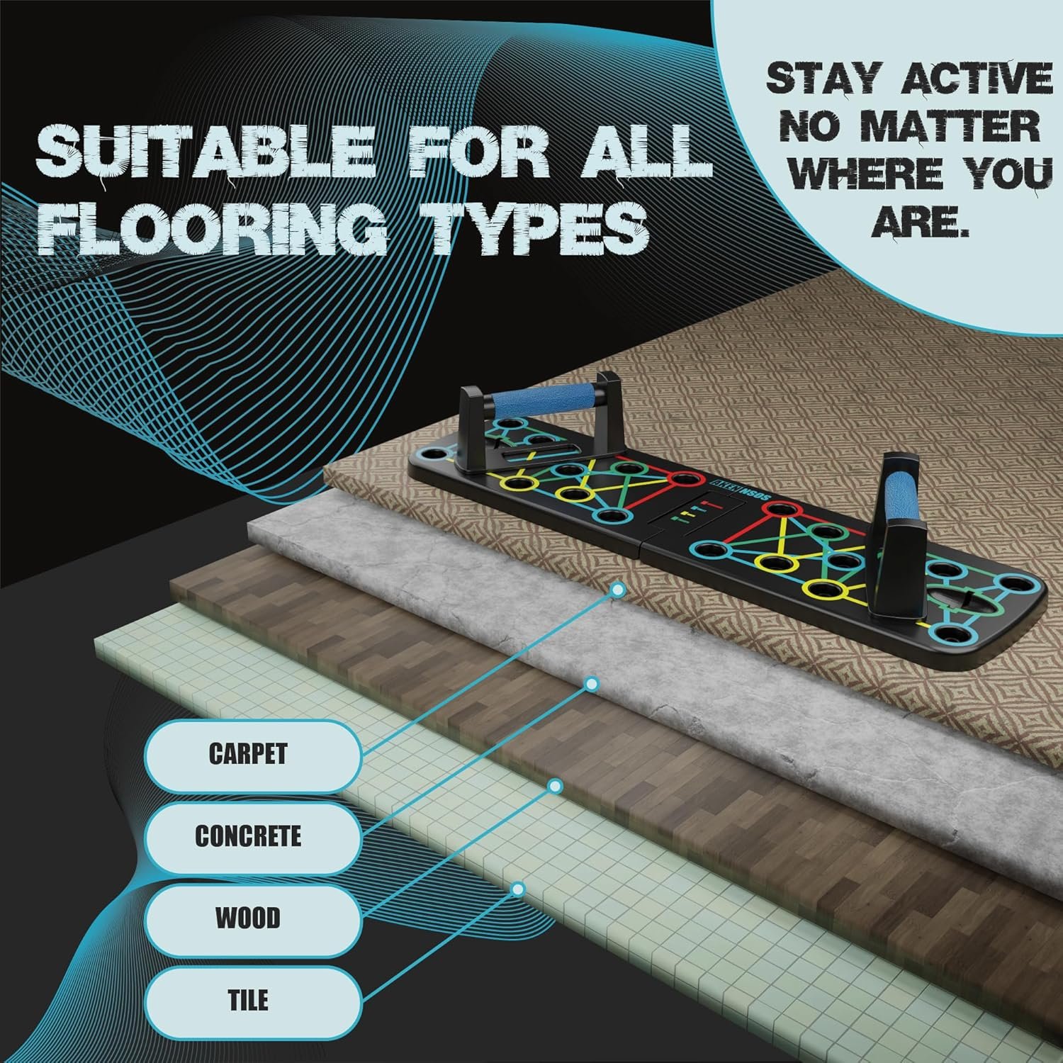 Quality Material & Non-Slip: Our push up board is a highly durable home workout equipment made from quality material. Its non-slip design ensures safety during your home workout sessions, making it a reliable piece of strength training equipment.