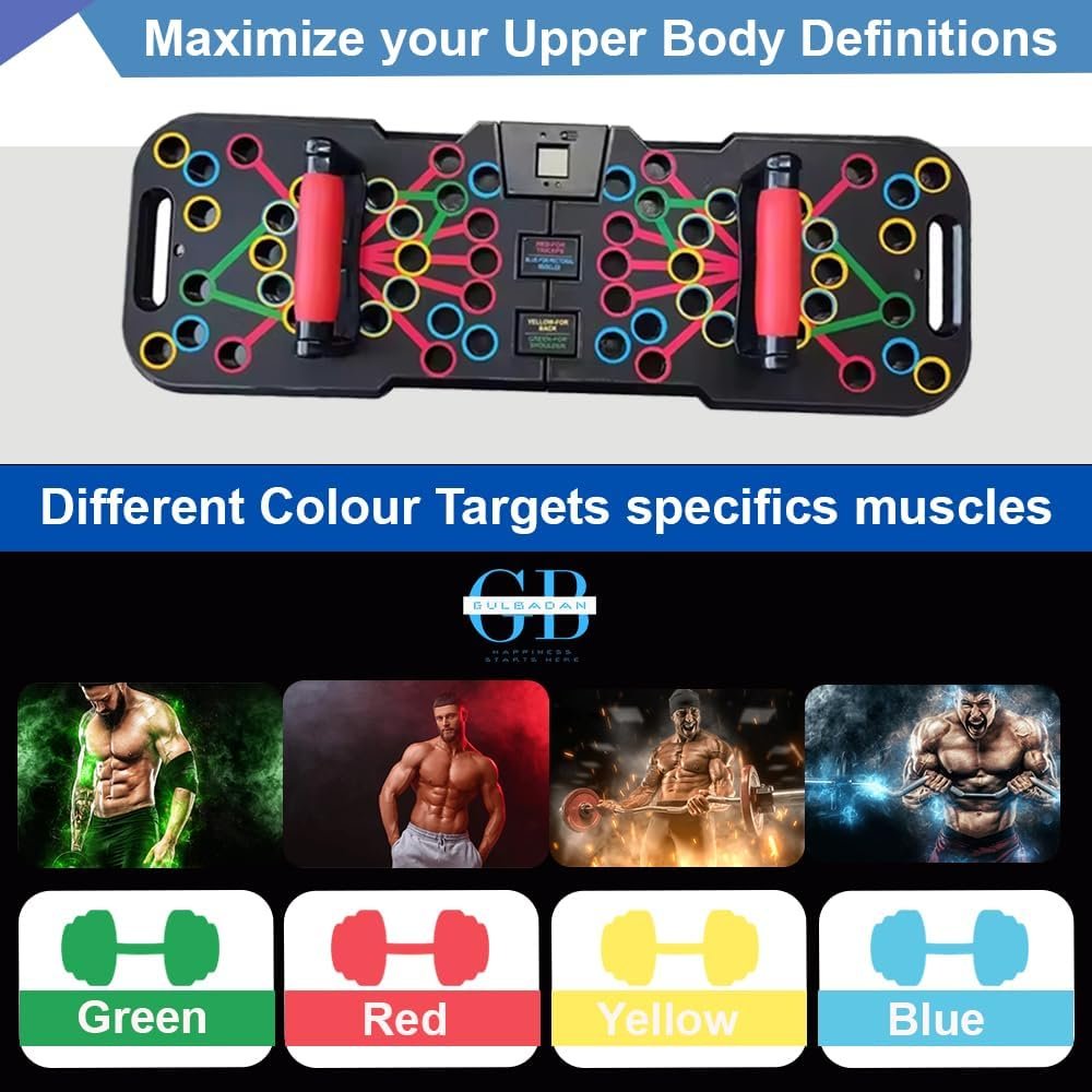 MULTIFUNCTIONAL WORKOUT SYSTEM: Our push-up board features multiple color-coded positions, targeting specific muscle groups including chest, shoulders, back, and triceps, ensuring a comprehensive upper body workout.