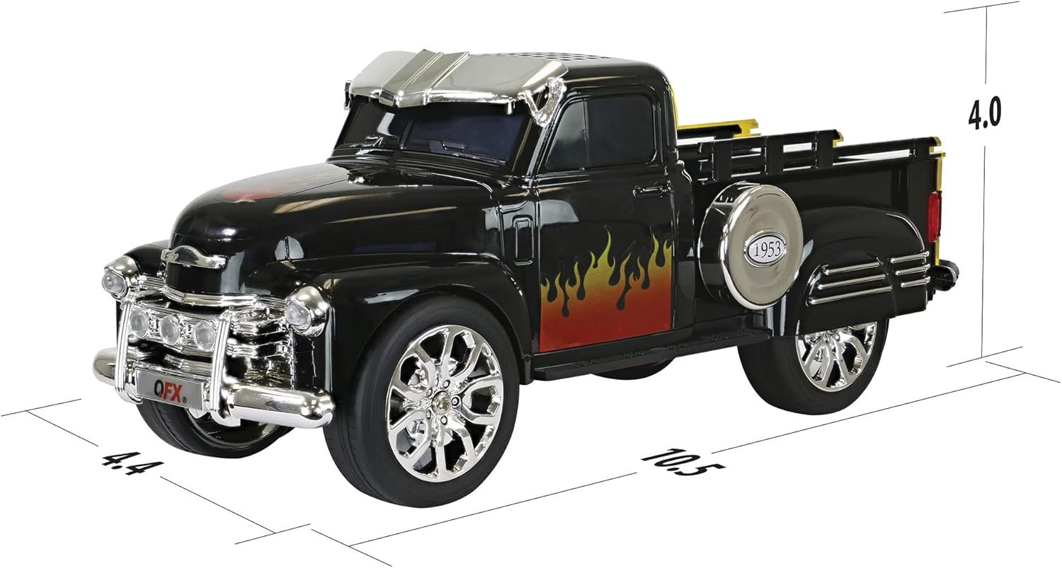 ICONIC DESIGN, IMPECCABLE SOUND – ’53 pickup, LED Party Lights, rechargeable sound. USB/TF Card Ports & FM Radio included.