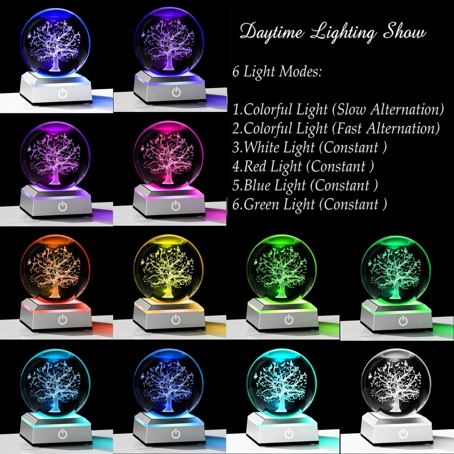 Led Colorful Light Base: Six lighting modes: slow flashing multi-coloured; fast flashing multi-coloured; constant white light, red light, blue light and green light. Light the crystal in various colors. Lighting up the night, shine bright like a diamond, choose to be happy.