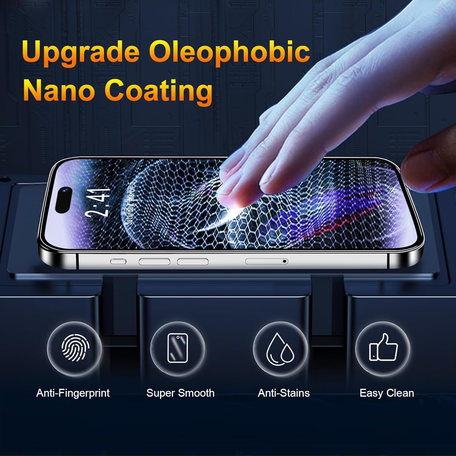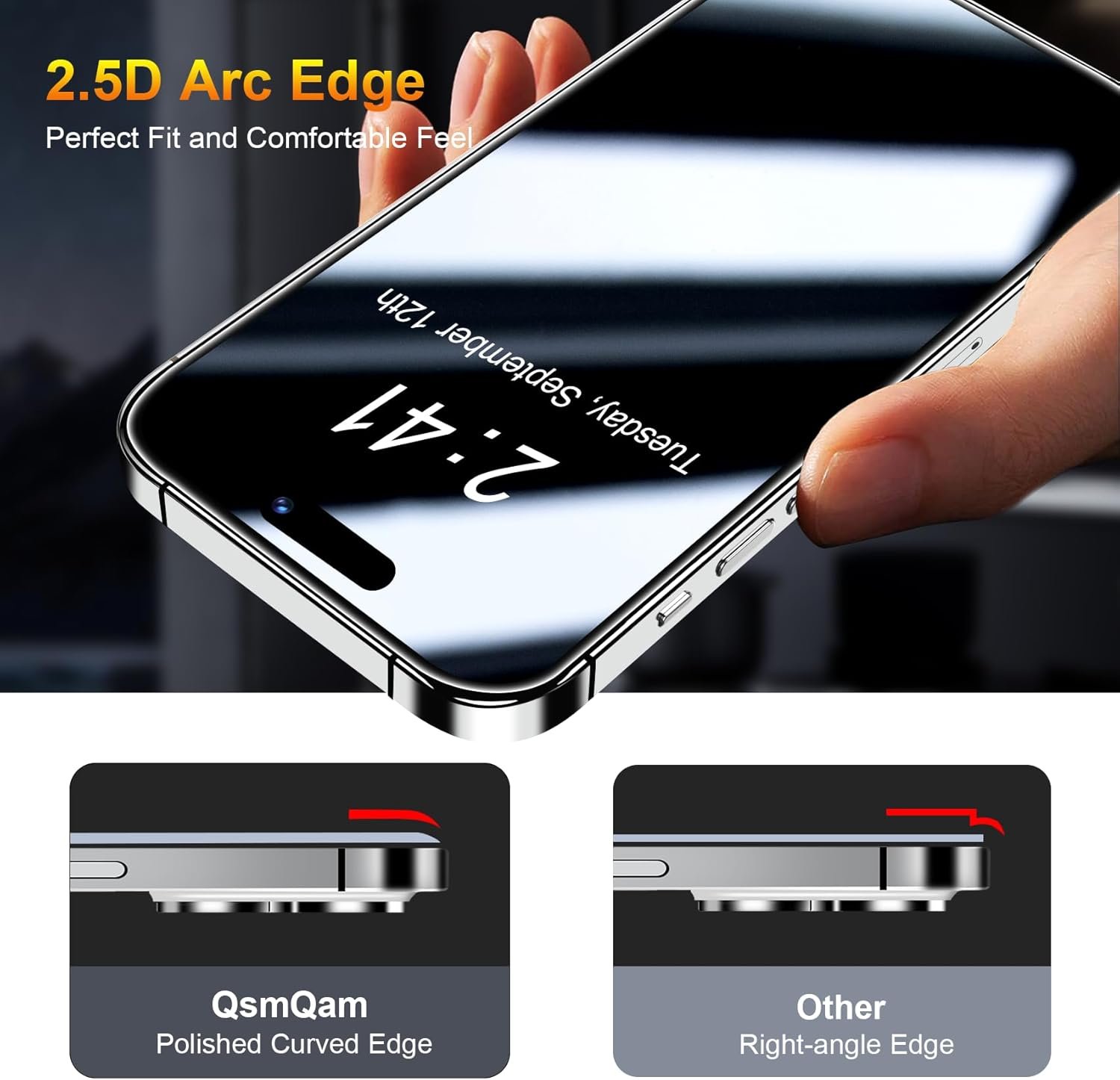 [Please Note]: Due to the rounded design of the iPhone 15 Pro Max phone screen edges, QsmQam designed the protector de pantalla to be smaller than the actual screen, covering only 0.5MM outside the display area and not the entire screen. The surface of the protective screen undergoes plasma oil coating treatment, effectively resisting fingerprints, smudges, and easy to clean.