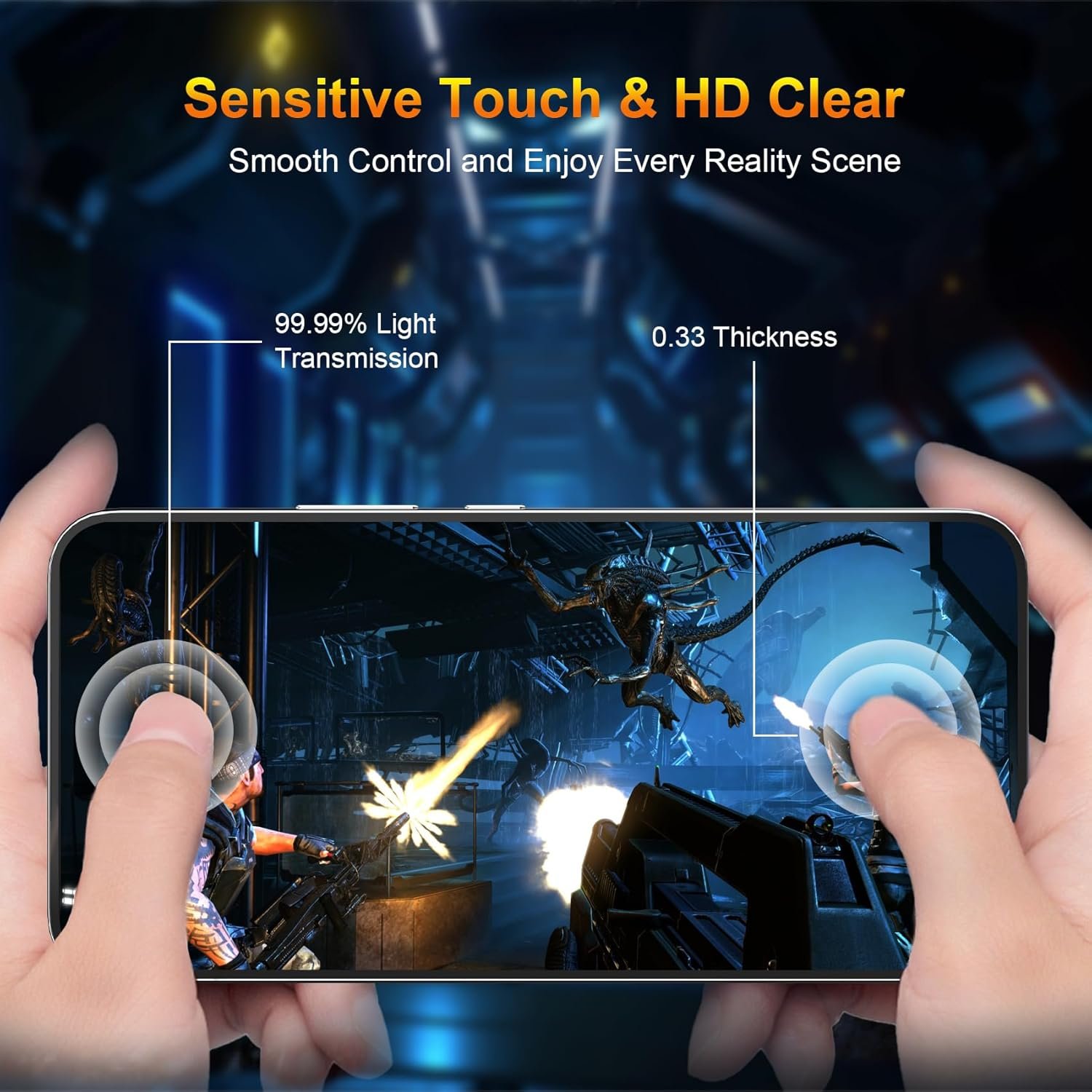 [Ultra-Thin and Perfect Touch Experience]: The glass screen protector is only 0.33mm thick, sensitive and smooth to touch, allowing for quick application launches with 100% touch sensitivity. It enables fast recognition of your fingerprint or Face ID, providing a seamless and reliable unlocking experience. The protector’s 2.5D rounded corner design ensures smooth edges that won’t scratch your hands.