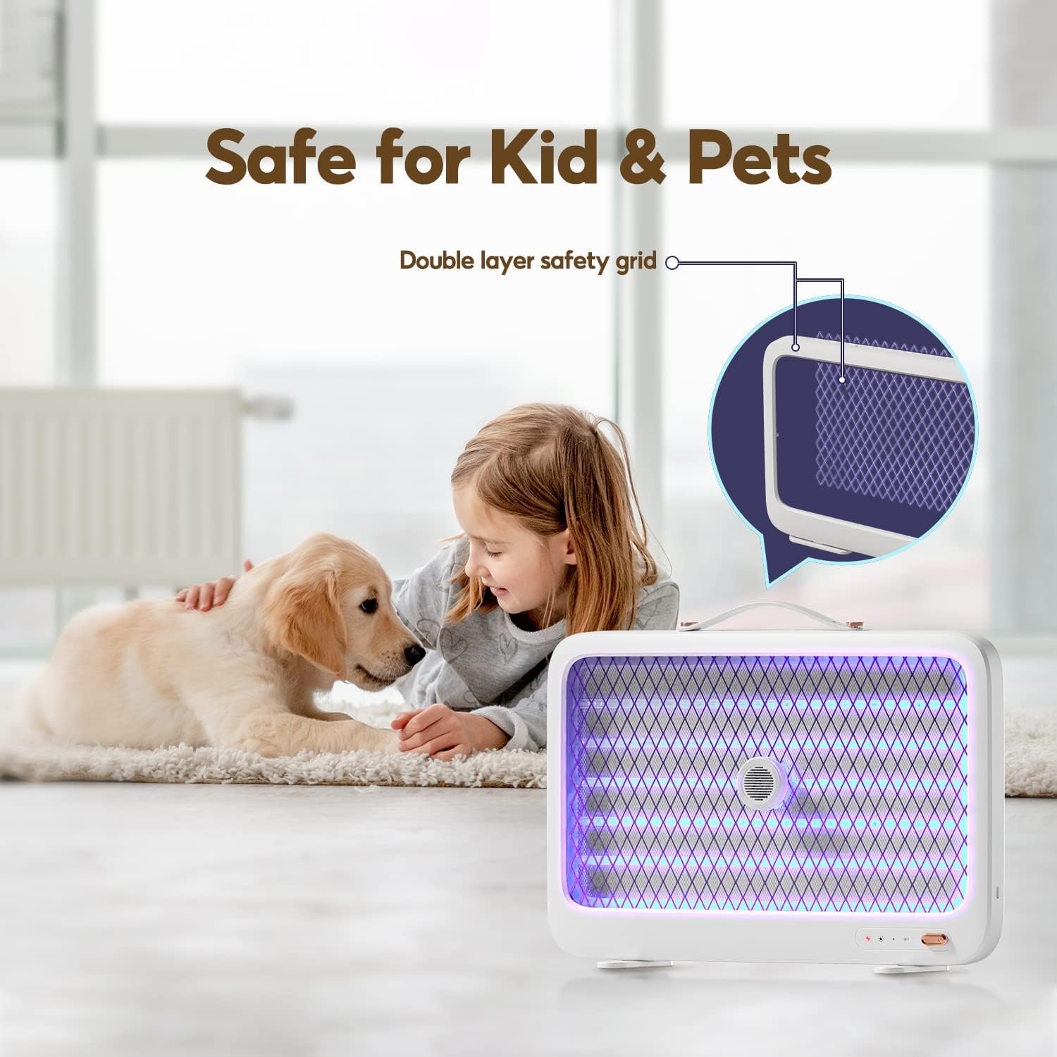 Dual Effective Traps: This indoor mosquito zapper combines an octenol mosquito attractant and advanced LED blue-violet light beads to effectively lure and eliminate mosquitoes, flies, wasps moths, and other flying pests, ensuring double the effectiveness compared to conventional zappers. Besides, the upgraded UV lamp beads provide a cost-saving, long-lasting, and more energy-saving way than those mosquito killer that requires replacing the bulb frequently.