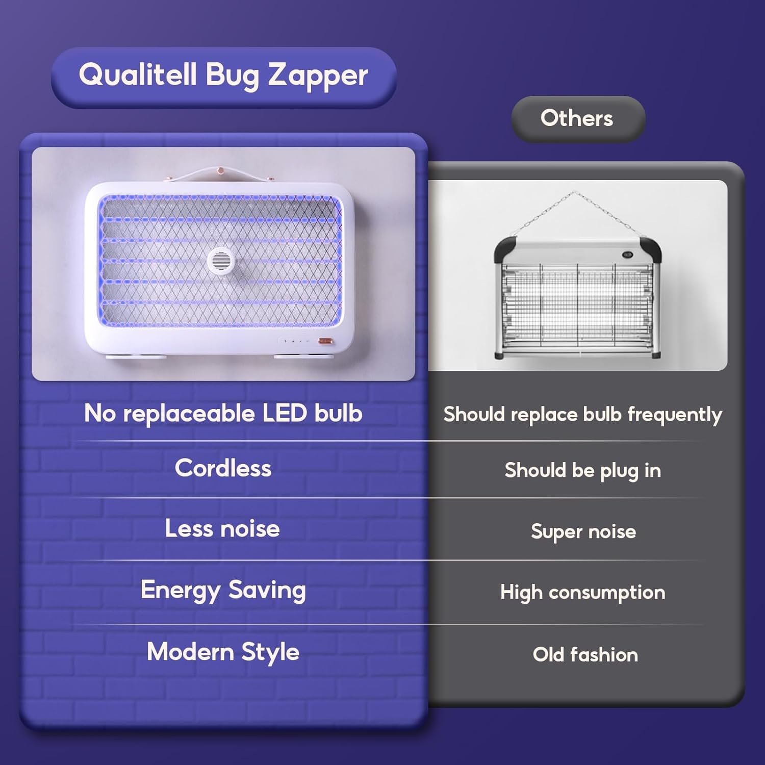 Versatile Application: Compact and lightweight, Qualitell bug zapper is perfect for both indoor and outdoor use. Like for home, office, kitchen, restaurant, bar, garage, patio, camping, garden, porch, farm, backyard, and restaurant use. Hang it or wall-mounted it or place it on any surface for versatile bug protection wherever you go.