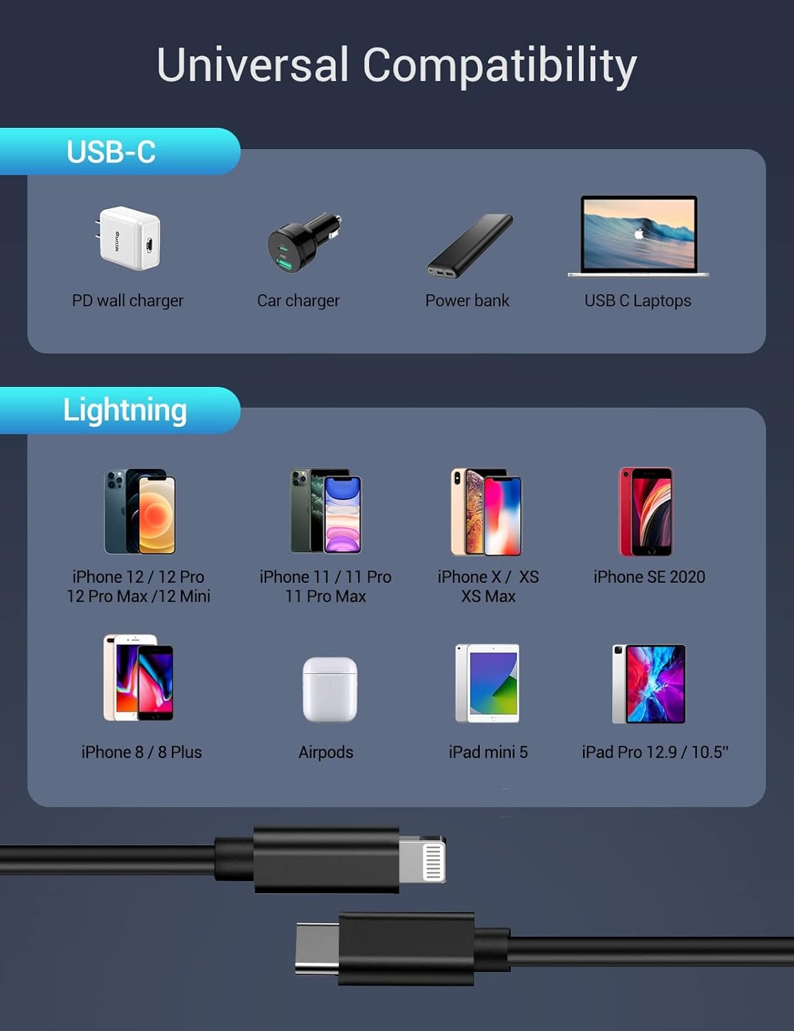 UNIVERSAL COMPATIBILITY: Quntis USB C to Lightning Cord supports fast charging for new iPhone 14 series, iPhone 13 series, iPhone 12 series, iPhone 11 series, iPhone X series, iPhone 8 series and more