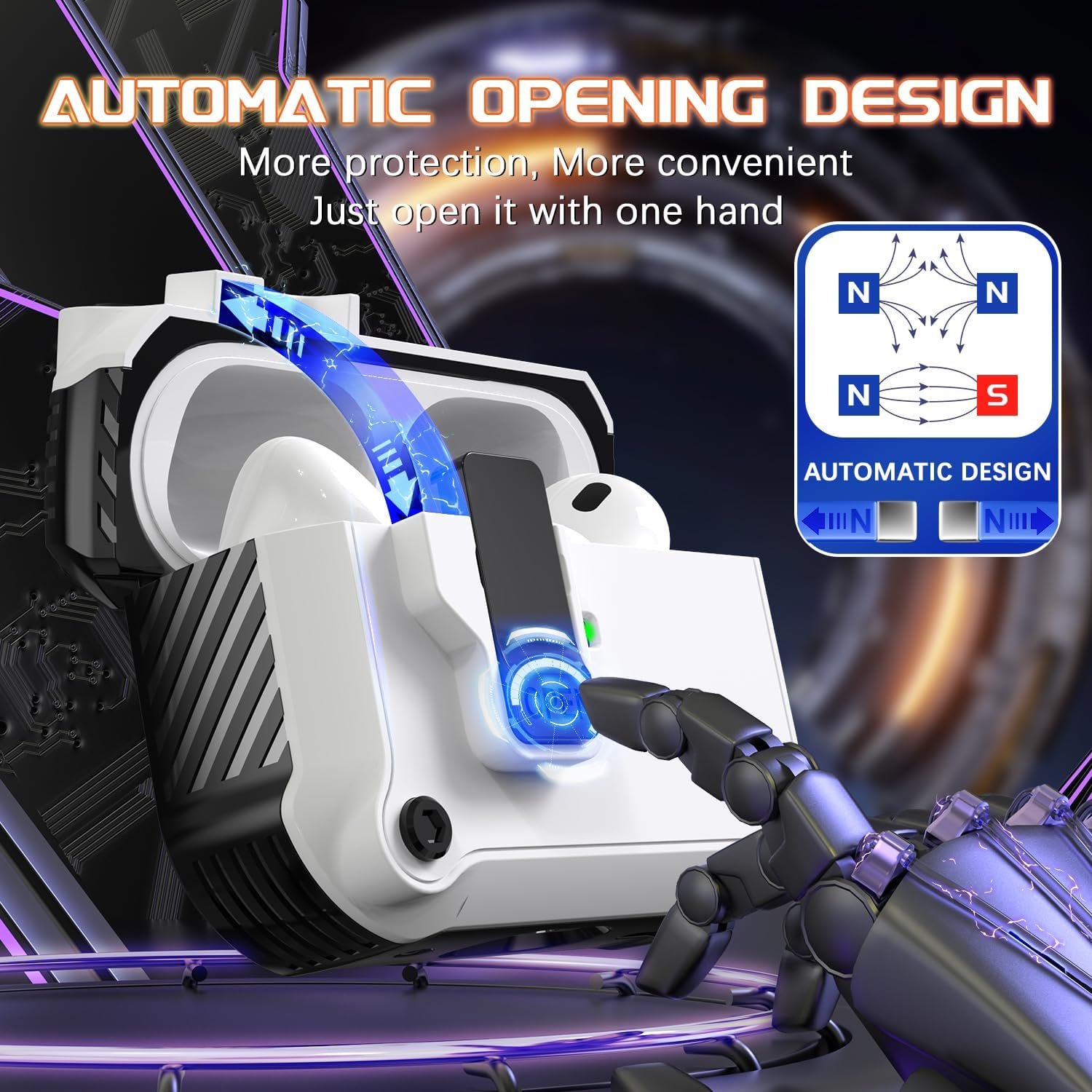 【Upgraded Lock and Auto-Pop-up Lid Protection】: R-fun case has upgraded locking and auto-pop-up cover functions to provide full protection compatible with your Airpods Pro 2nd Gen/1st Gen. This case features an all-around shock-absorbing design to prevent accidental drops and collisions. The auto-closing feature prevents the case from opening when dropped from a height, effectively protecting your valuable headphones from any damage.