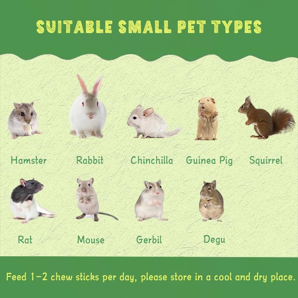 IDEAL GIFT FOR FURRY FRIENDS: It is a good rabbit toys and treat choice for most small rodent pets like chinchillas, gerbils, guinea pigs, hamsters, rabbits, bunny, squirrels, rats,mouse, gerbils, degu, prairie dogs. We know pets can be picky, If your bunny (or piggy or chinny) stomps and turns up her nose, you can still rest easy.