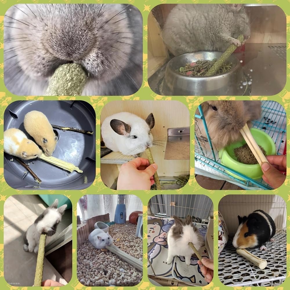 The Timothy Hay Sticks are meticulously handcrafted from 100% natural material, Purity, and the absence of pigments and hormones.The Timothy Grass sticks are enriched with high fiber, low protein levels, and a range of essential vitamins, This promotes healthy digestion and maintains the integrity of your pet’s gut flora.