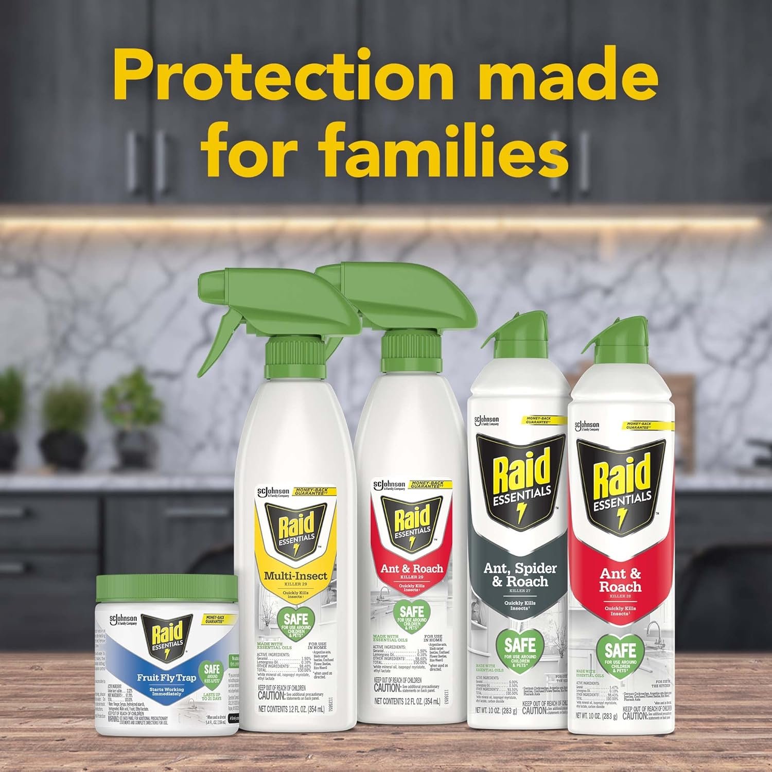 Save to use around kids and pets* and it contains no added fragrances, dyes, parabens or sulfates. This Raid Essentials fly trap catches up to 100% of fruit flies (on day one of use). To use, simply shake well before opening, place near the source of fruit flies, twist off the lid and remove the cap. The discreet fruit fly trap can be placed on countertops or tables. This Raid fly trap is part of a complete line of products�including Raid Flying Insect Killer � to target specific insects inside and outside the home. Discover family-friendly protection backed by 60 years of Raid experience.* when used as directed