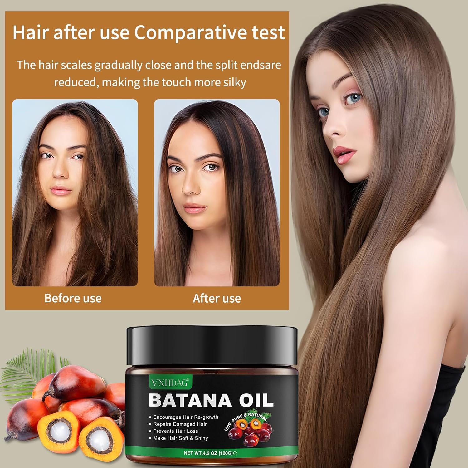 STIMULATES HAIR GROWTH: Batana oil is rich Rich in Essential Fatty Acids, Antioxidants, Vitamin E, Oleic Acid, Linoleic Acid and Oleanolic Acid. No other product offers all the same nutrients and benefits in one single oil as Batana does