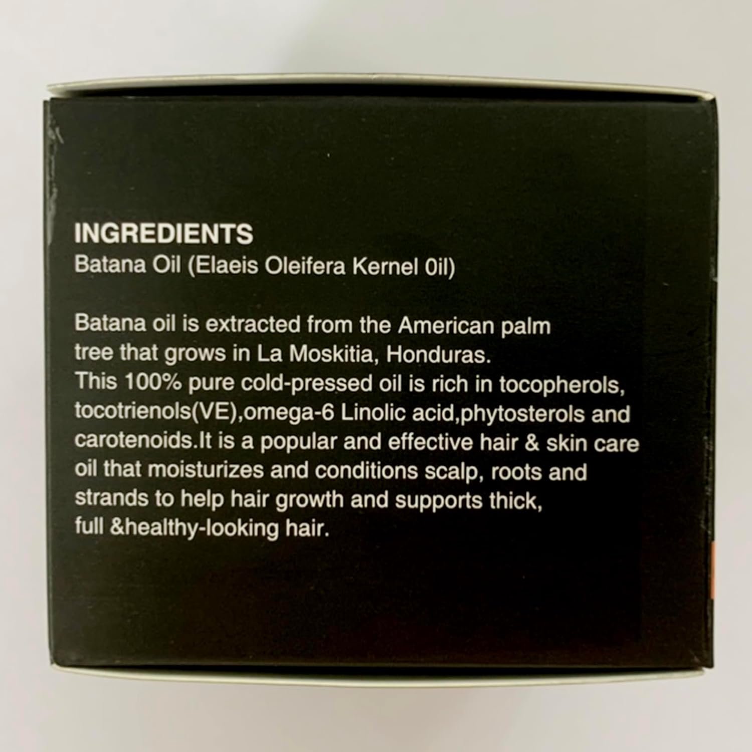 Natural & Raw Batana Oil: Unrefined batana oil is extracted from the nuts of American Palm Tree, sourced from Honduras, also known as Elaeis Oleifera Kernel Oil. It promotes hair growth, moisturizes hair scalp and repair damaged hair in a natural and healthy way