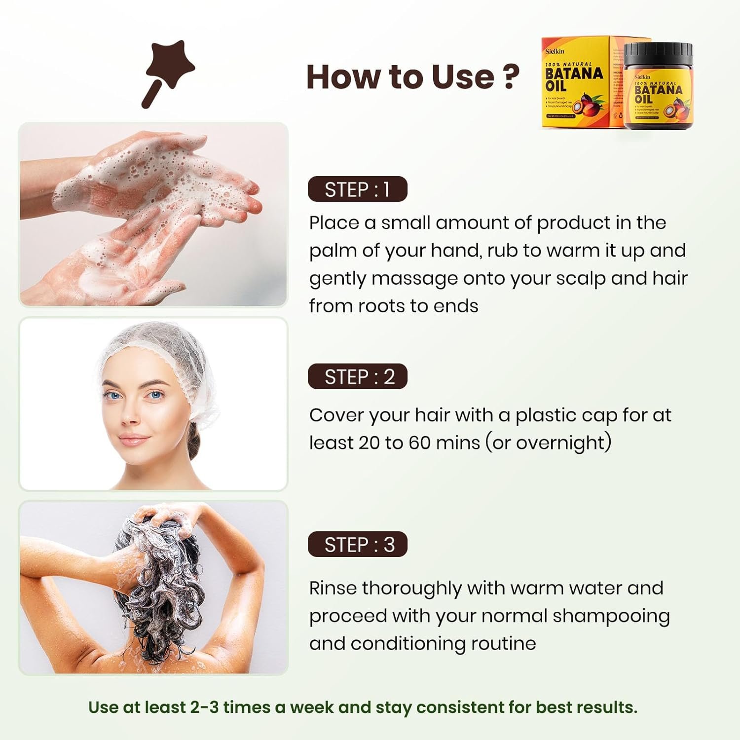 EASY TO APPLY: Simply apply, massage, and let batana oil work its magic under a cap for 20 minutes before rinsing. Ideal for all hair and skin types. Boost your hair care routine 2-3 times weekly for optimal results.