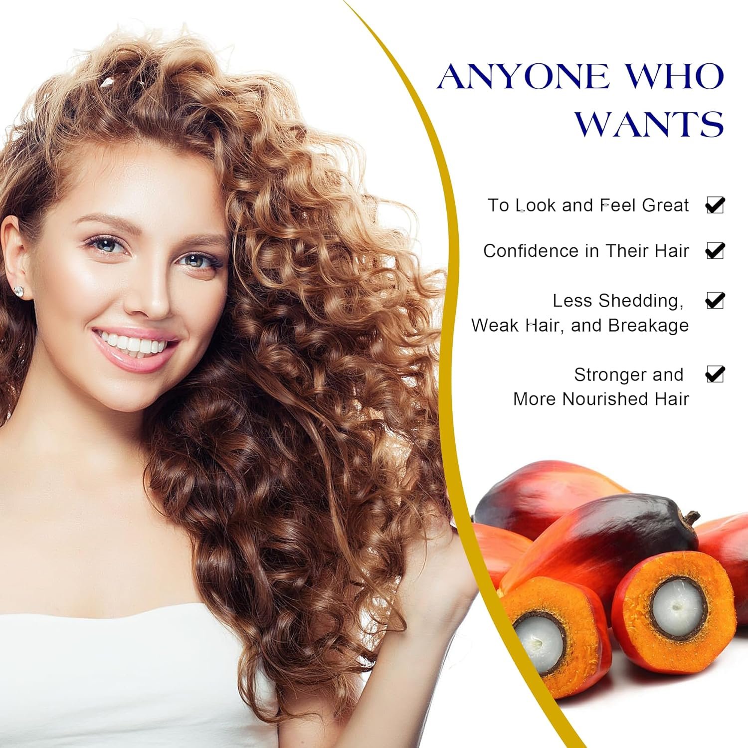 【STRENGTHENS HAIR】Our Batana oil nurtures healthy roots, leaving your hair thicker and more vibrant, promoting healthy growth and preventing damage.