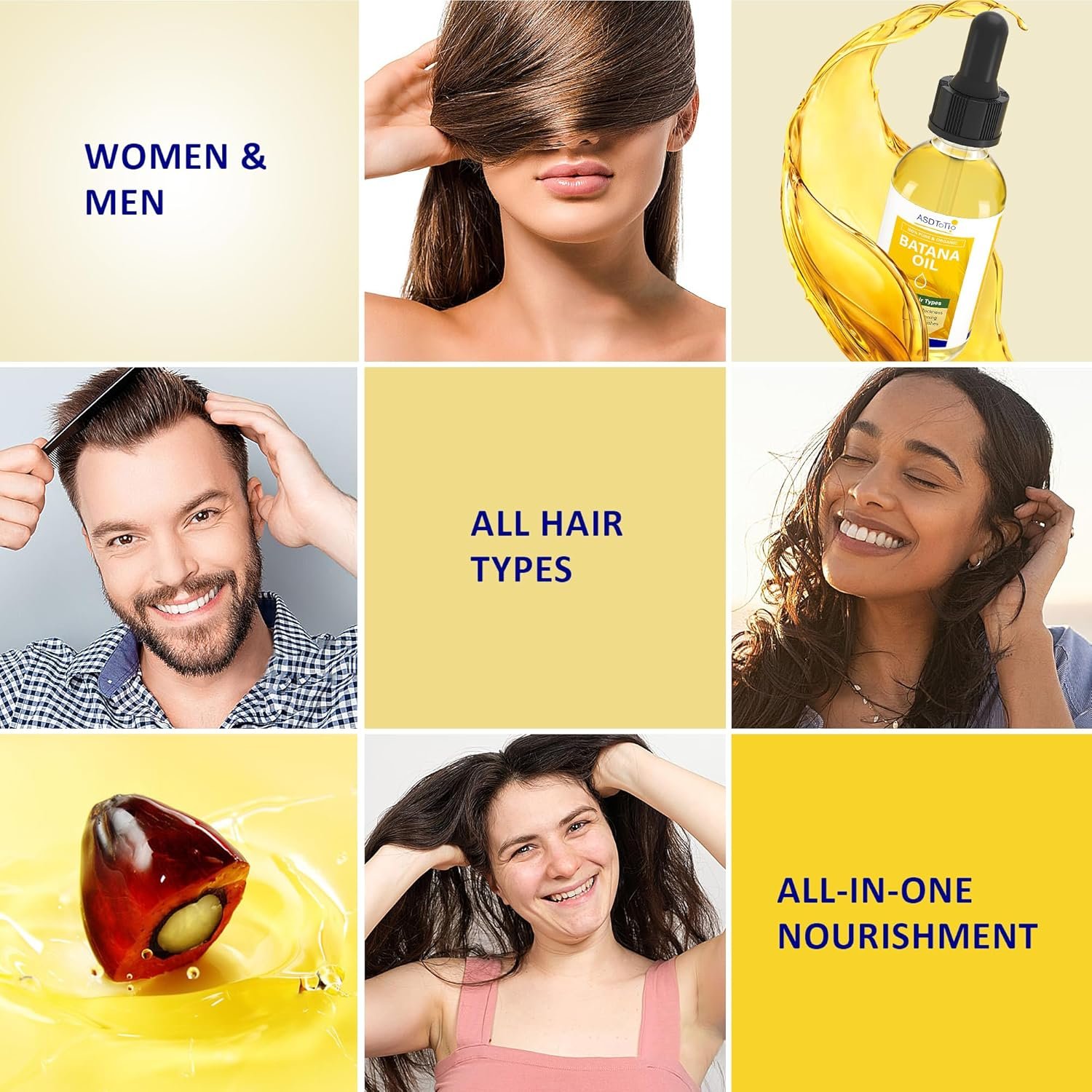 【HYDRATES DRY SCALP】Batana oil is a natural moisturizer that can help soothe and hydrate a dry scalp. Its fatty acids help lock in moisture, reducing itching and flaking.