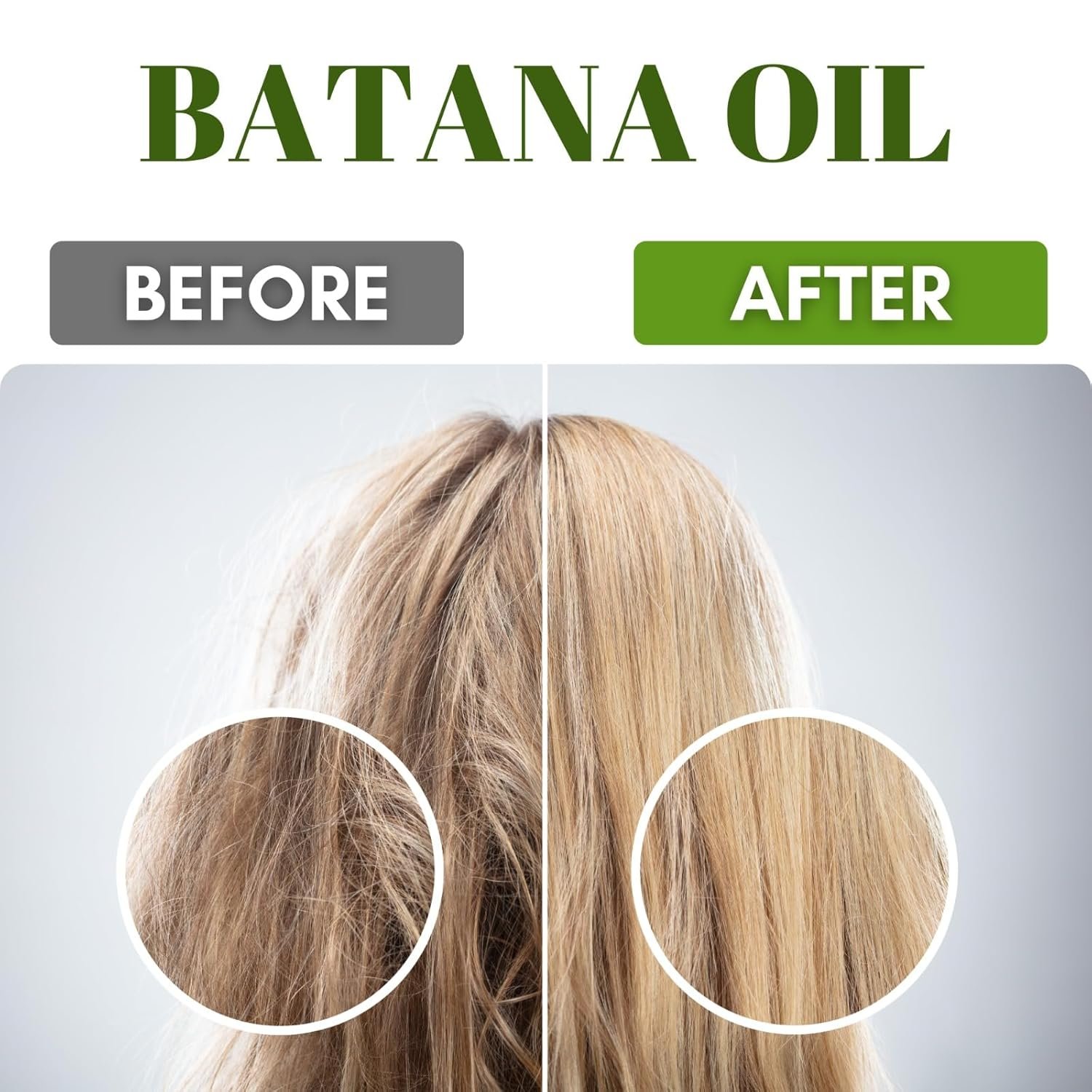 Natural Ingredients: 100% raw Batana oil from Honduras, free from additives or preservatives. This pure, unrefined oil is a treasure trove of nourishing goodness for your hair and scalp. Extracted from the seeds of the Batana tree,