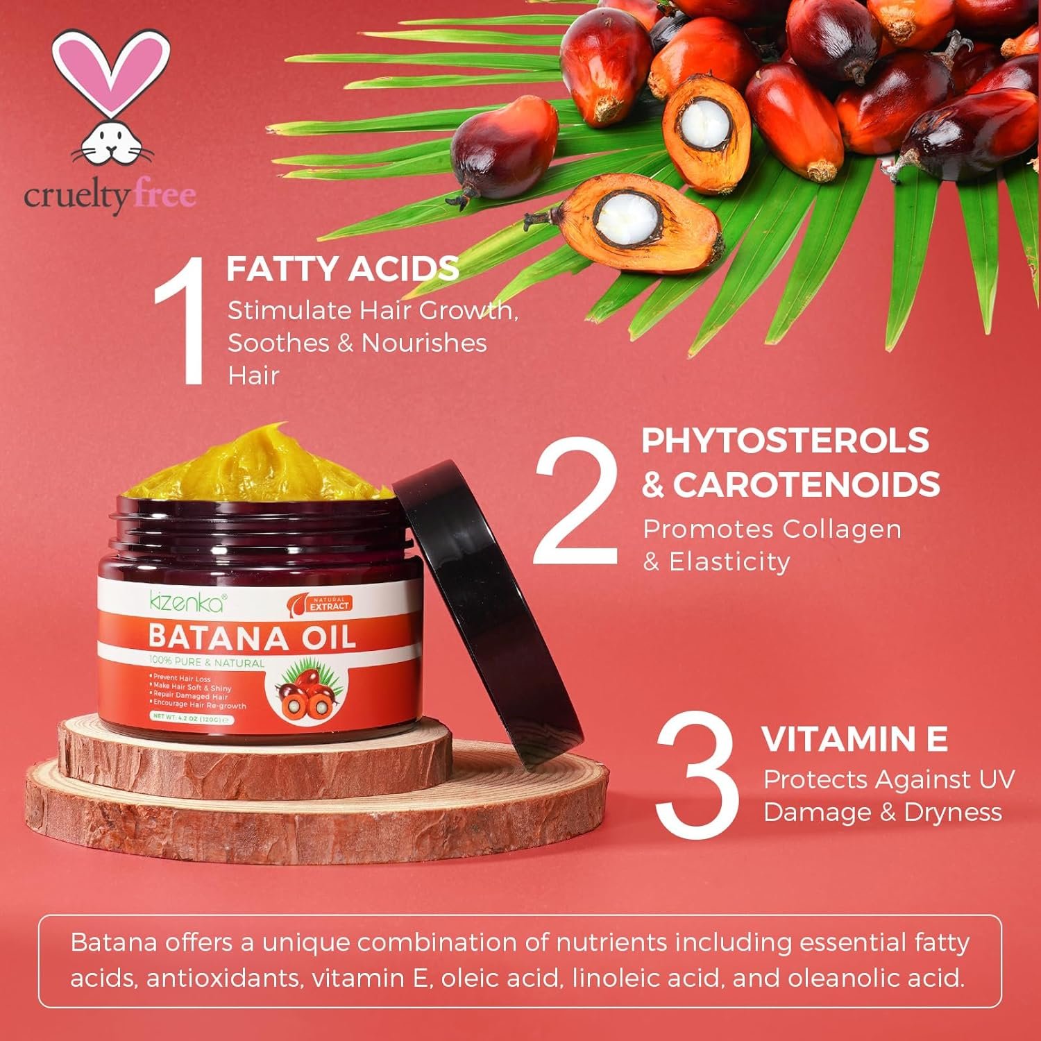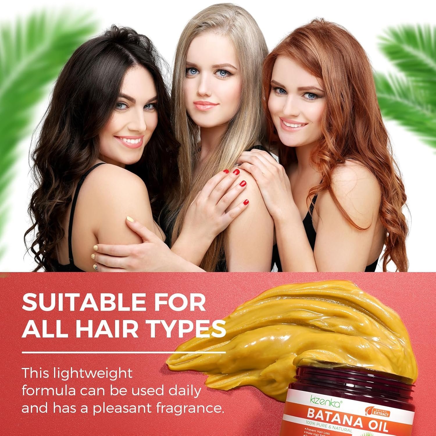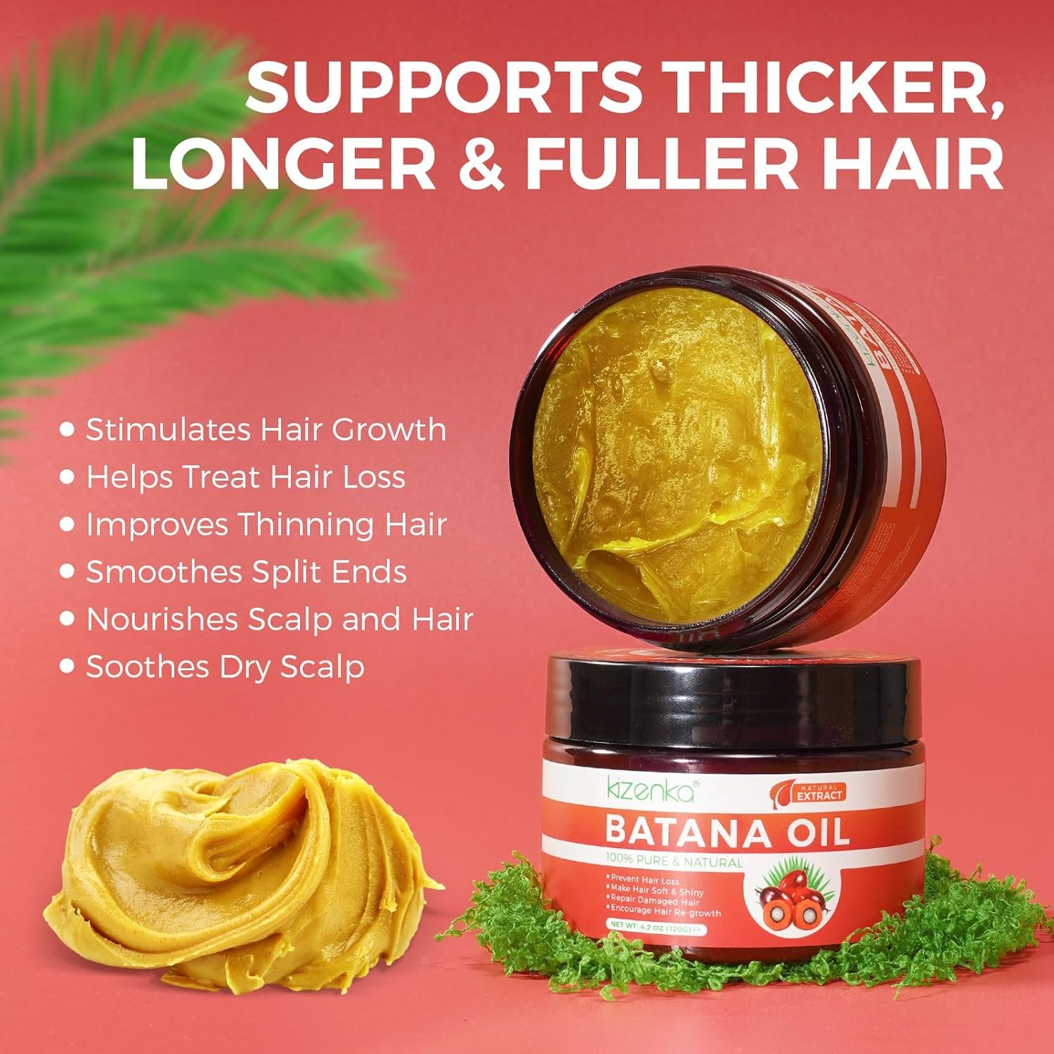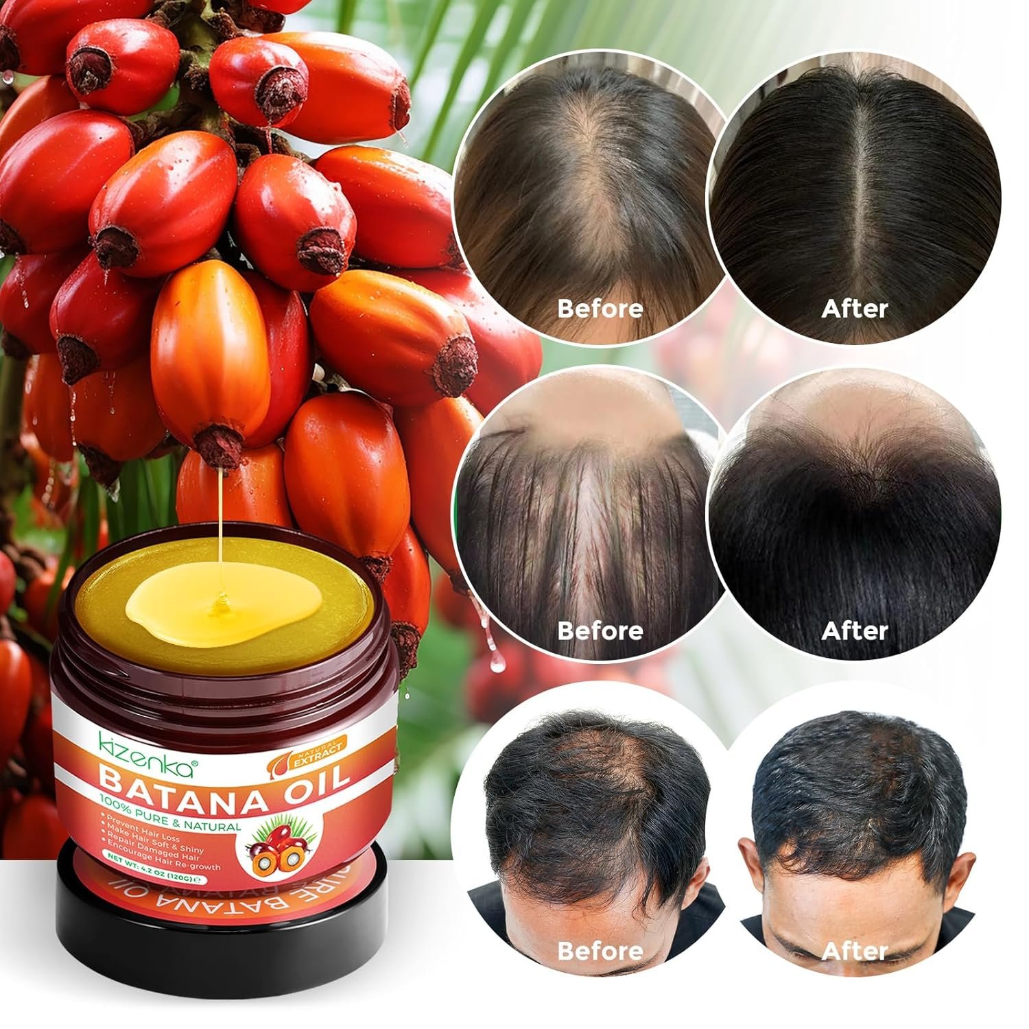 Natural Batana Oil for Hair Growth – Kizenka Batana Oil is a unique blend of natural ingredients inspired by the hair care traditions of Honduras. It is highly effective in preventing hair loss, promoting hair growth, and achieving smooth, soft hair. This batana oil is excellent to improve hair quality, preventing damage, and fighting dryness