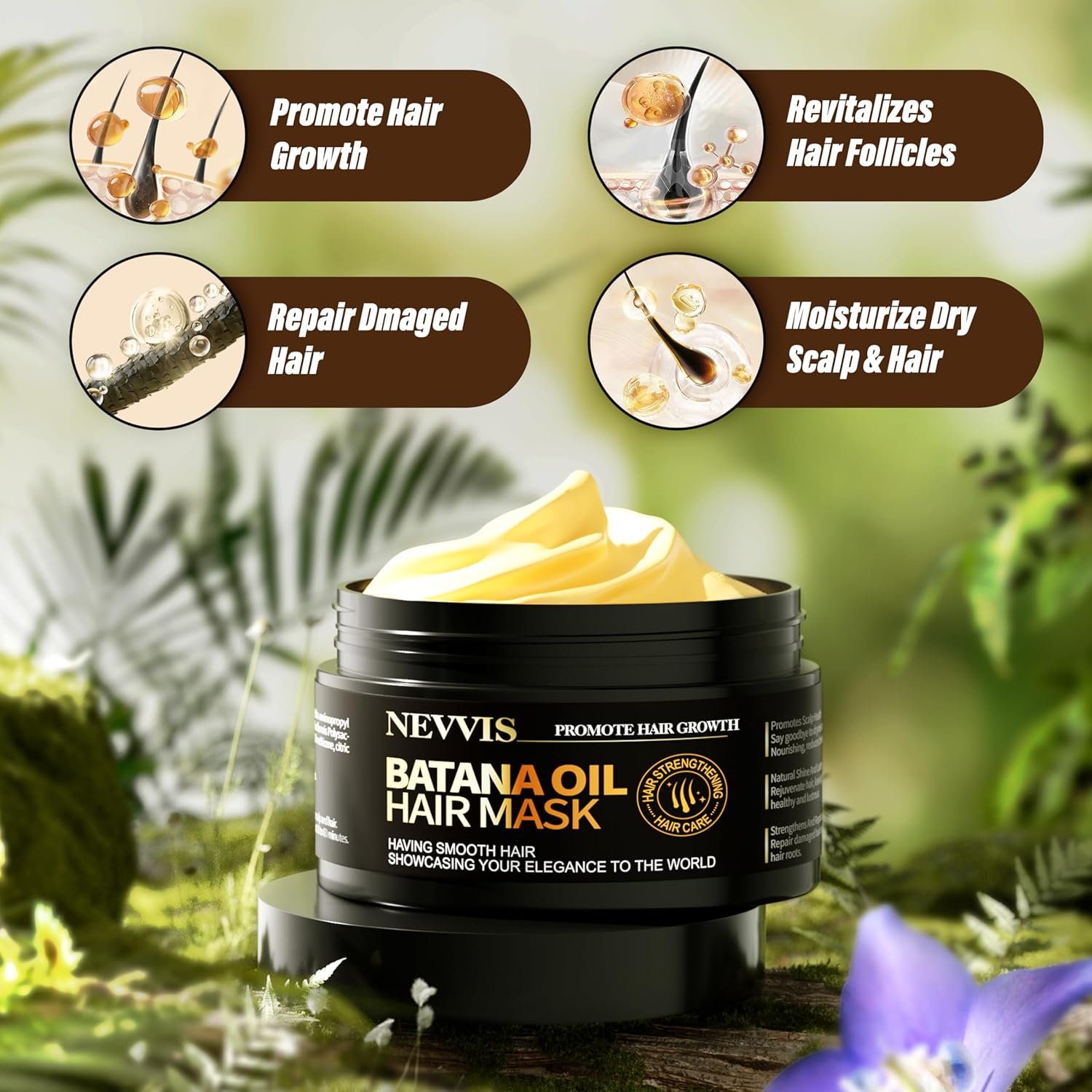 PROMOTES HAIR GROWTH AND REPAIR: Our 100% natural batana oil organic hair mask nourishes the scalp, strengthens the hair, reduces breakage, revitalizes the hair follicles, promotes hair regrowth, helps you get stronger hair, embrace healthy and lush hair