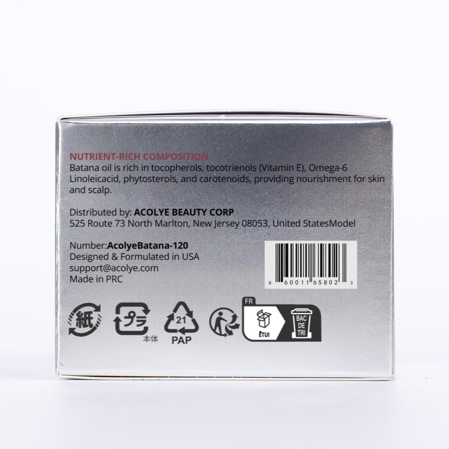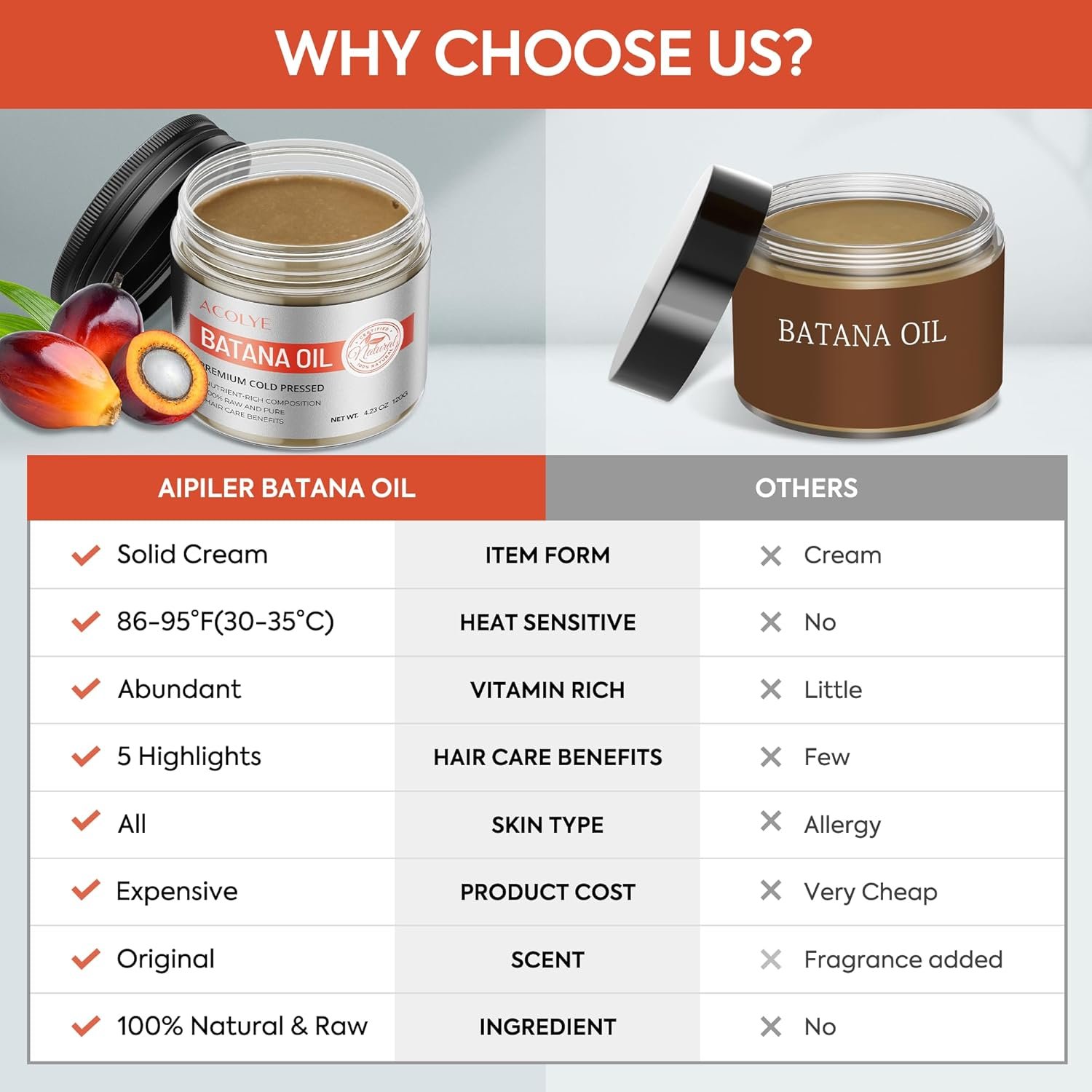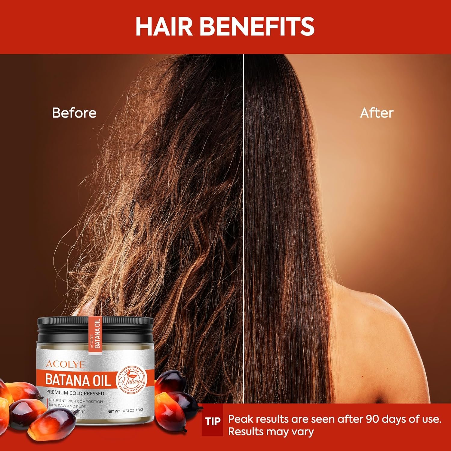 Natural ingredients: Acolye batana oil ingredients are 100% derived from natural Batana fruit, free of harmful substances and additives, providing safe and effective hair care.
