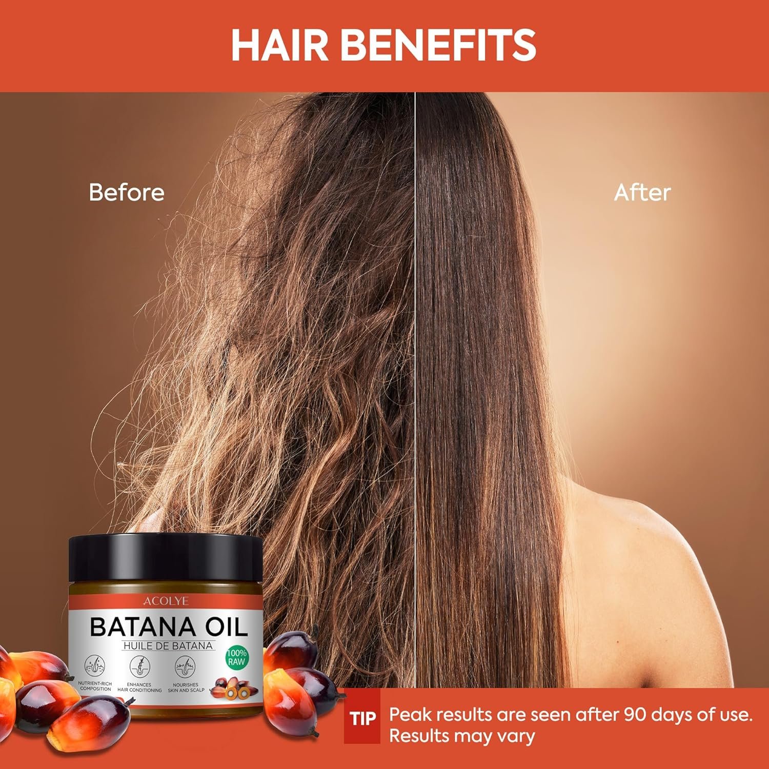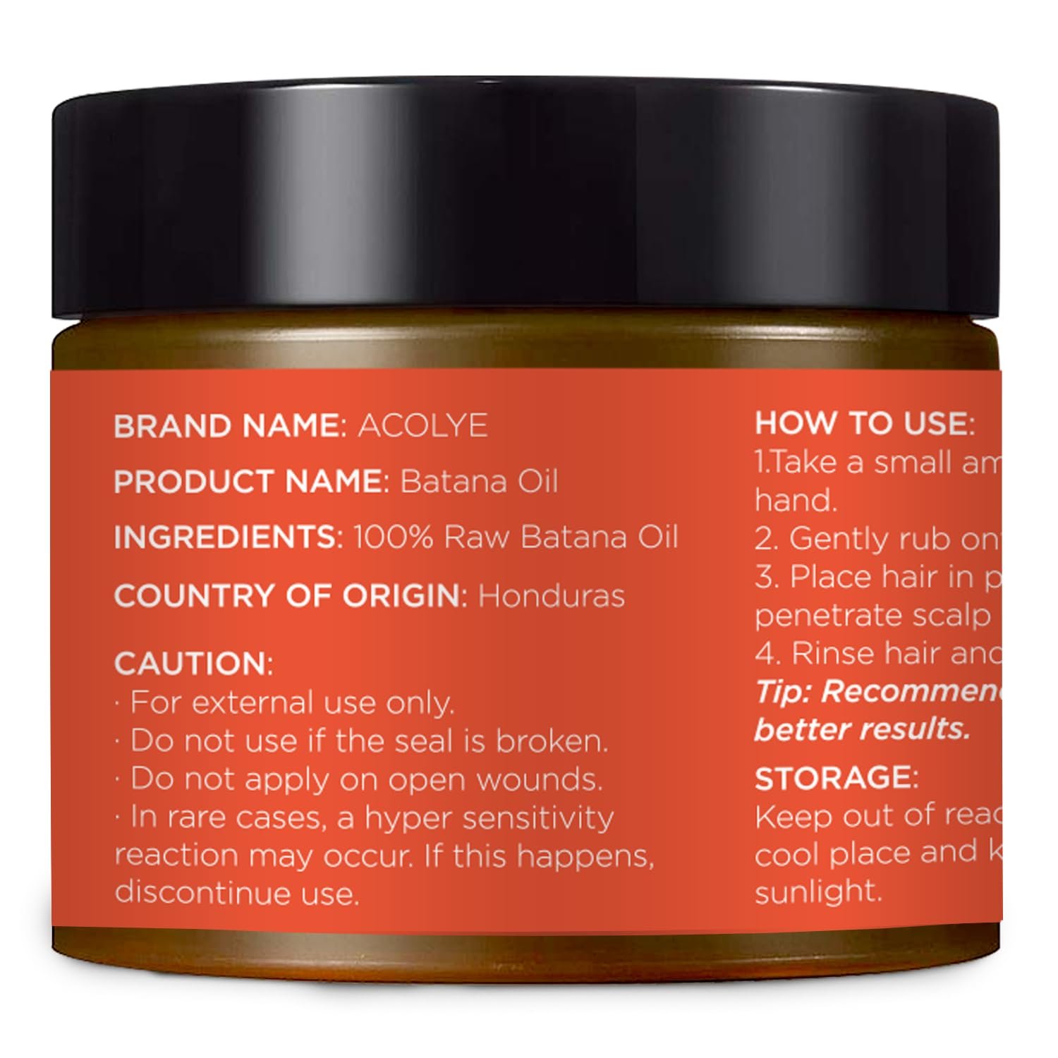 Natural ingredients: Acolye batana oil ingredients are 100% derived from natural Batana fruit, free of harmful substances and additives, providing safe and effective hair care.