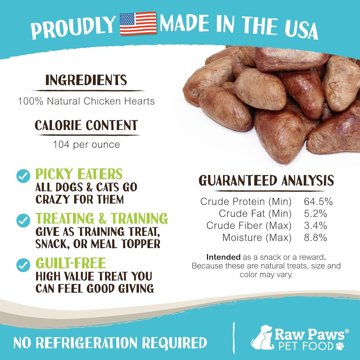 CHICKEN HEARTS FRESH FROM THE FARM: Trade out the artificial ingredient treats for our raw freeze dried chicken treats! Chicken heart treats are a rich source of essential vitamins and nutrients our pets need to thrive. Delicious and nutritious freeze dried chicken hearts sourced from free-range chickens humanely raised on USA family farms.