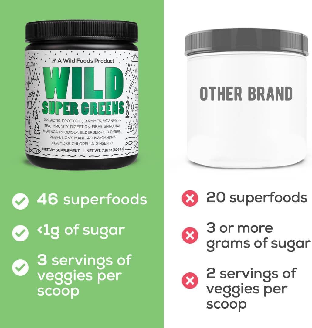 3 Servings of veggies per scoop: With 46 organic plant nutrients that equals to 3 servings of veggies per scoop, incorporating Wild Super Greens into your diet can be one of the easiest ways to reach your full servings of veggies for the day