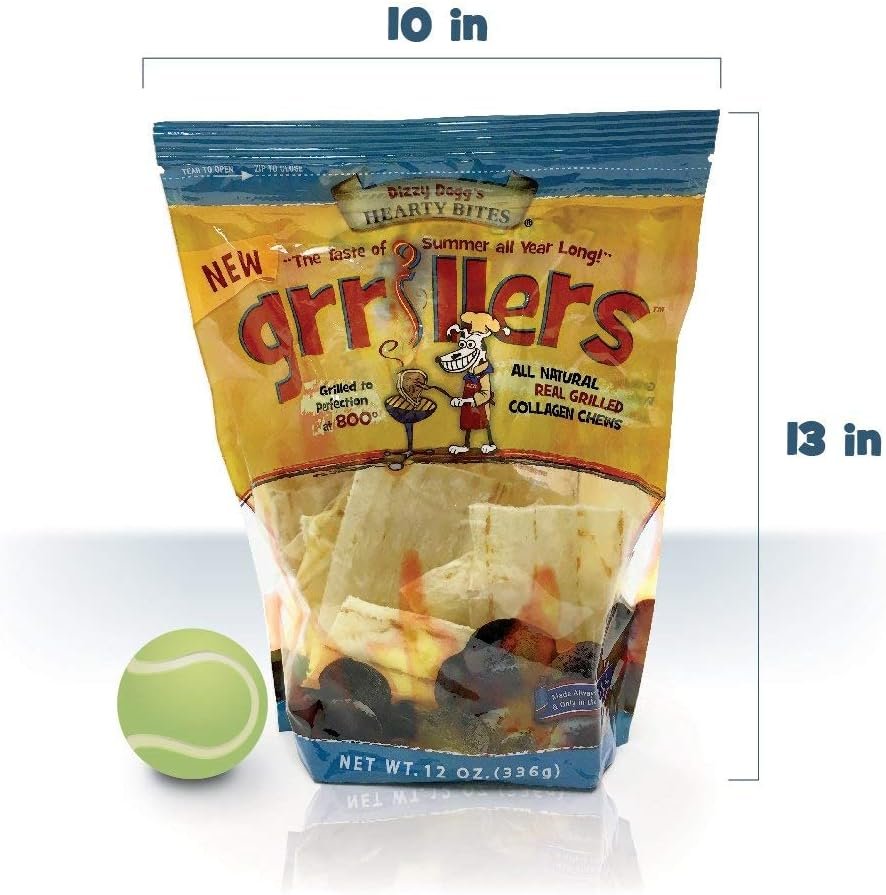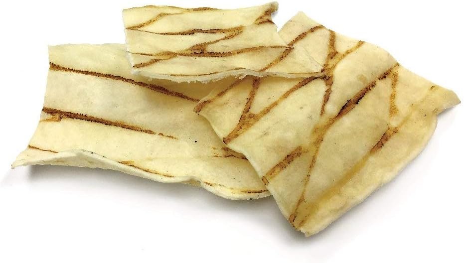 Resealable 12 oz, stay-fresh bag. Our 3.5 inch x 4.5 inch cuts are dried to perfection with just the right amount of moisture, to ensure they are not consumed too quickly and will not shatter or snap. The benefit of using thicker cuts is the additional time for needed for your dog to moisten and break down the chew.